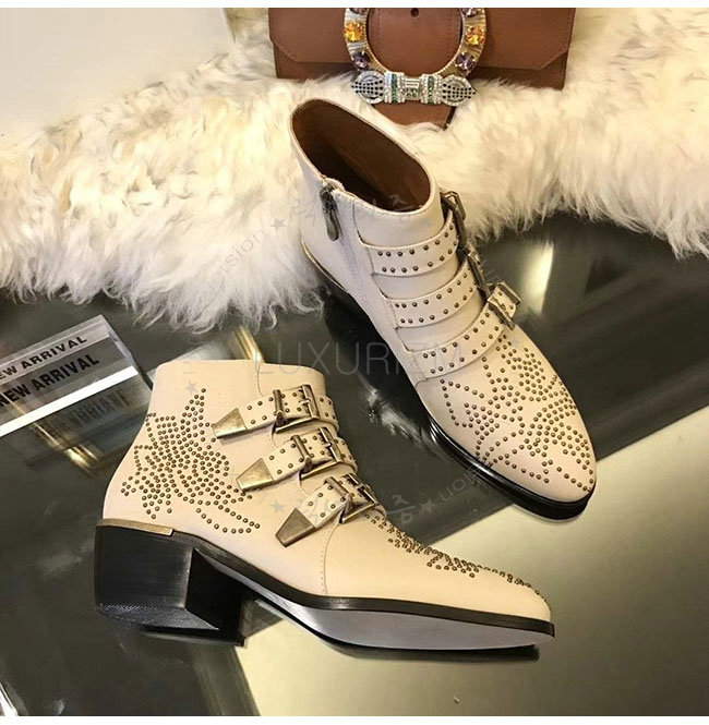 CHLOE-CHC16A 끌로에 수산나 화이트 가죽 앵클 부츠 여성용