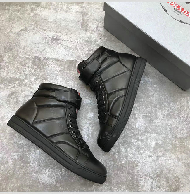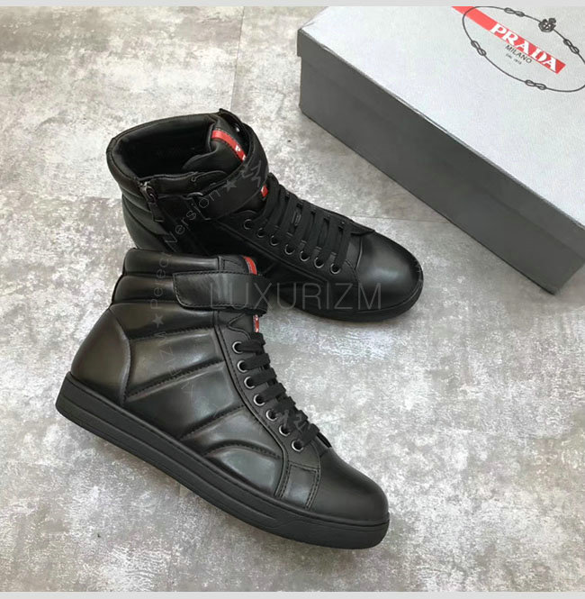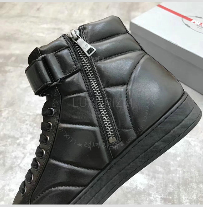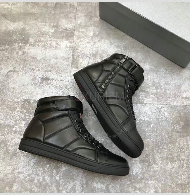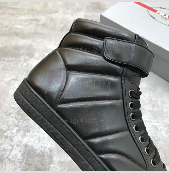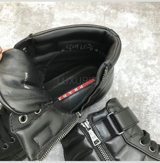 [스페셜오더]PRADA-2D865B 프라다 블랙 가죽 하이 스니커 부츠 남성용