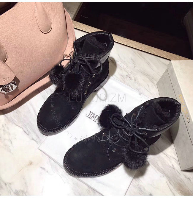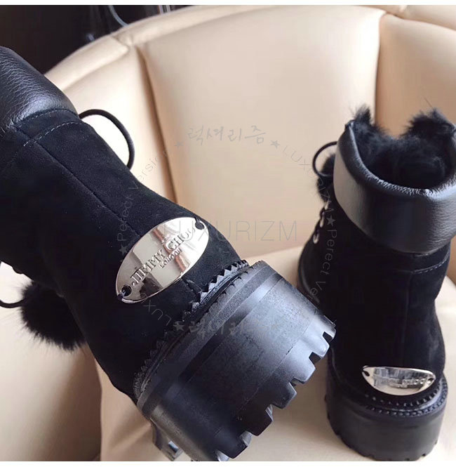 JIMMY CHOO- ELBAFLA 지미추 밍크 스웨이드 가죽 엘바 플랫 앵클 부츠 여성용