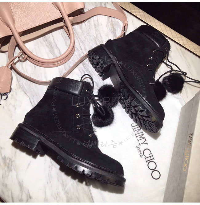 JIMMY CHOO- ELBAFLA 지미추 블랙 스웨이드 가죽 엘바 플랫 앵클 부츠 여성용