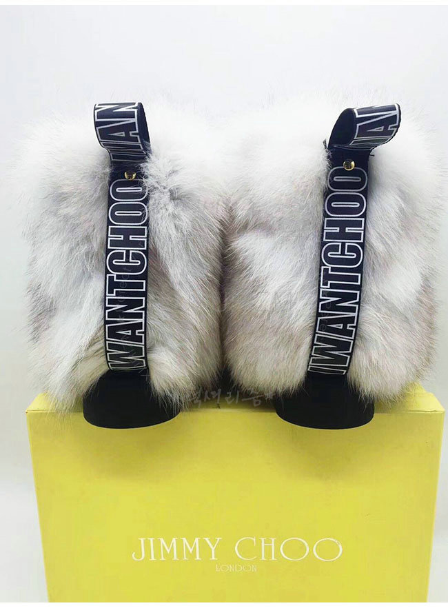 JIMMY CHOO-DALTON 지미추 화이트 여우털 달톤 플랫 부츠 여성용