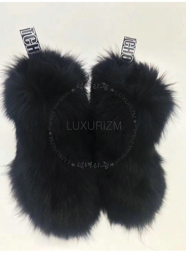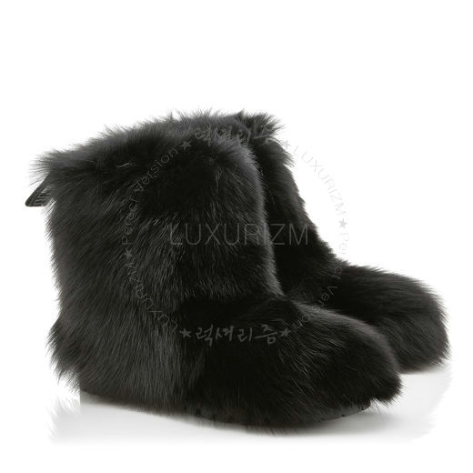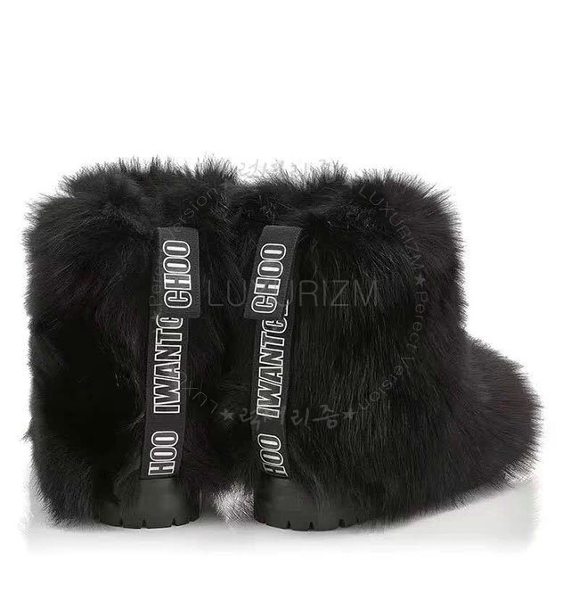 JIMMY CHOO-DALTON 지미추 블랙 여우털 달톤 플랫 부츠 여성용