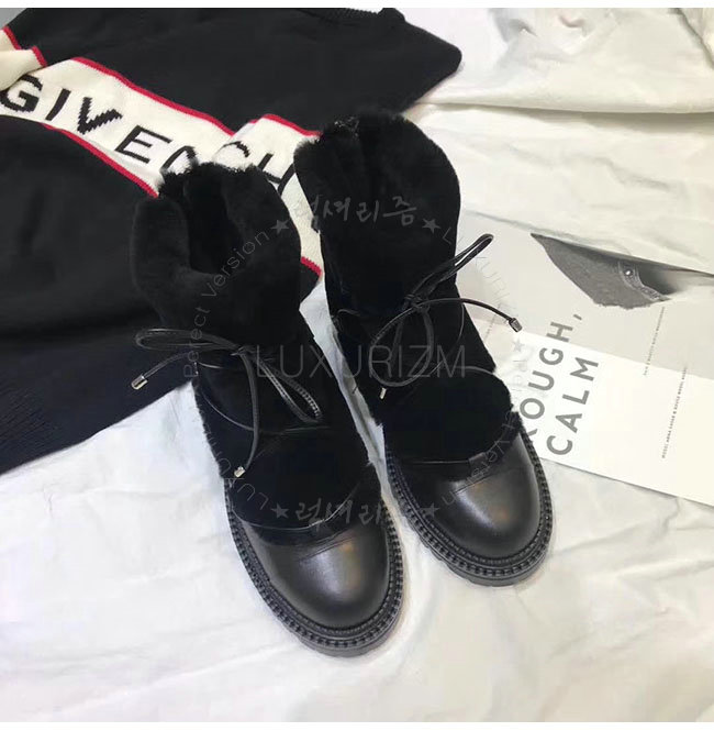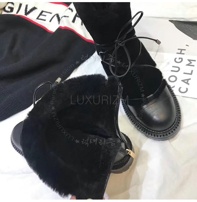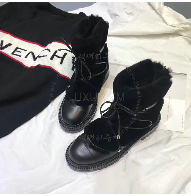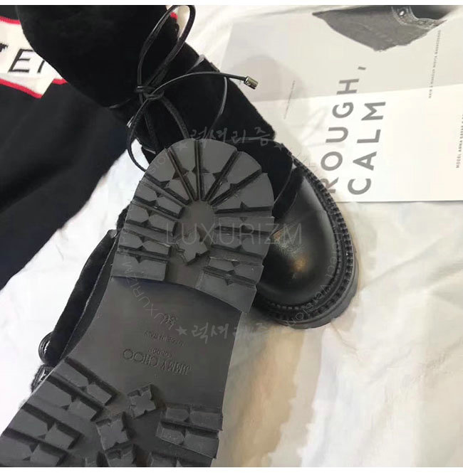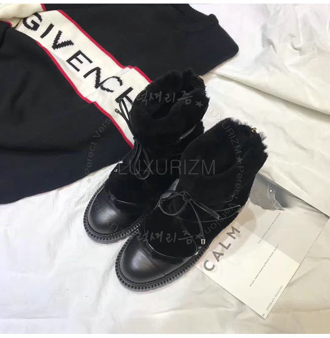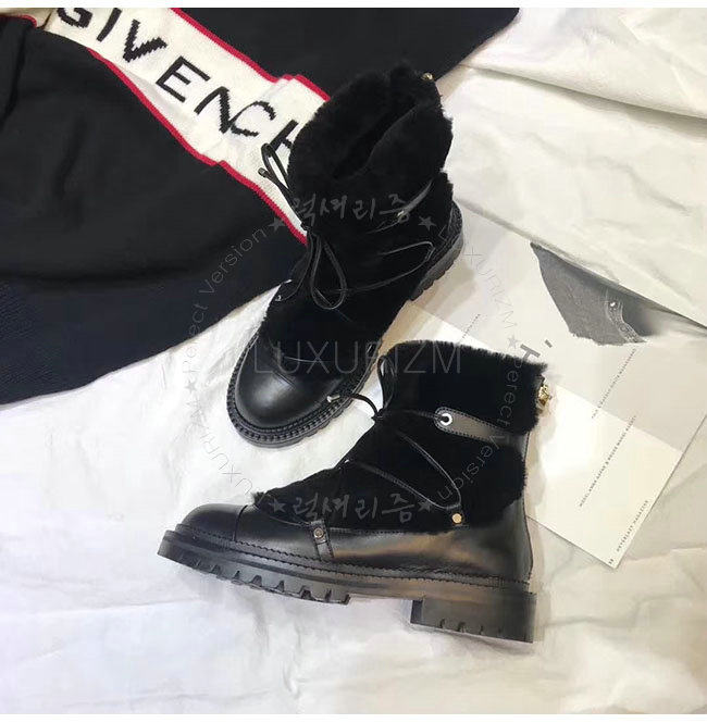 JIMMY CHOO-지미추 DARCIE 블랙 가죽 시어링 달시 부츠 여성용