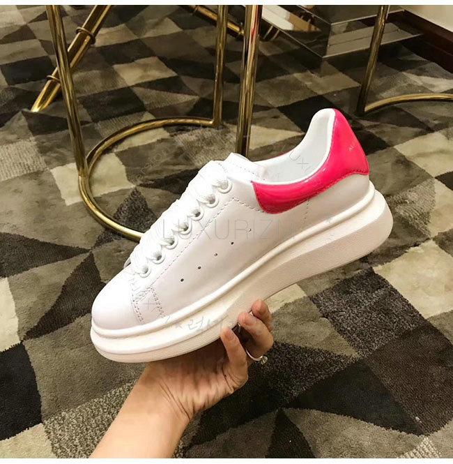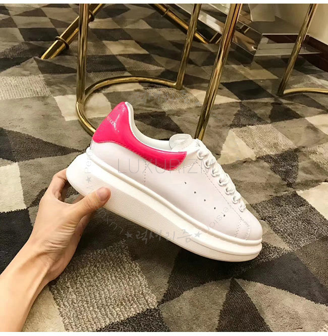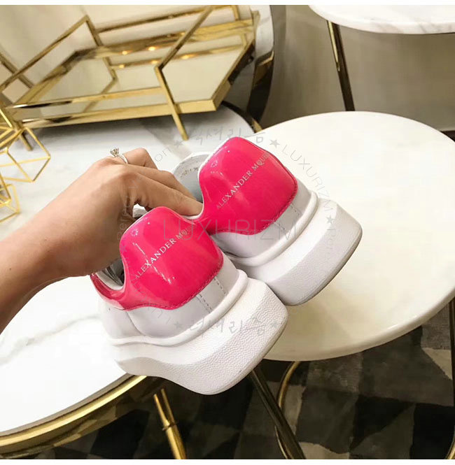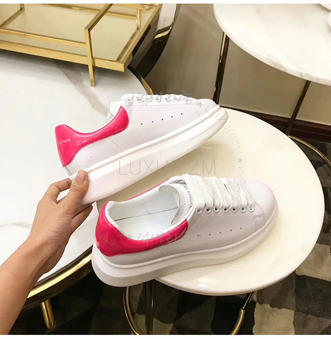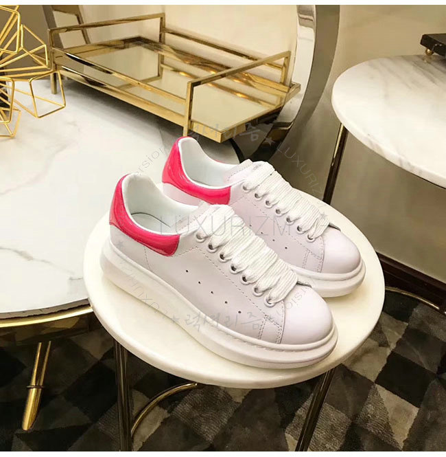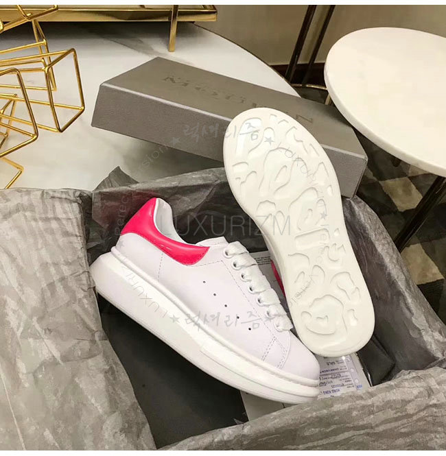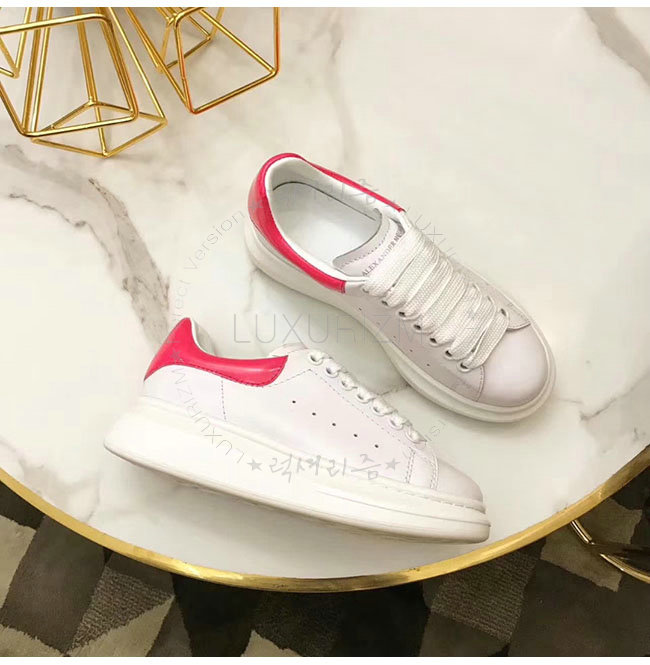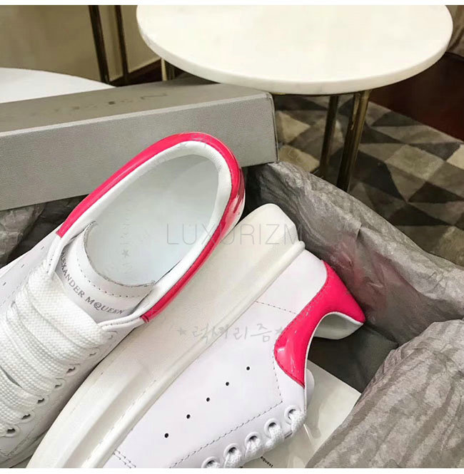 ALEXANDER MCQUEEN-462214 알렉산더 맥퀸 오버솔 화이트 핑크 가죽 스니커즈 남녀공용