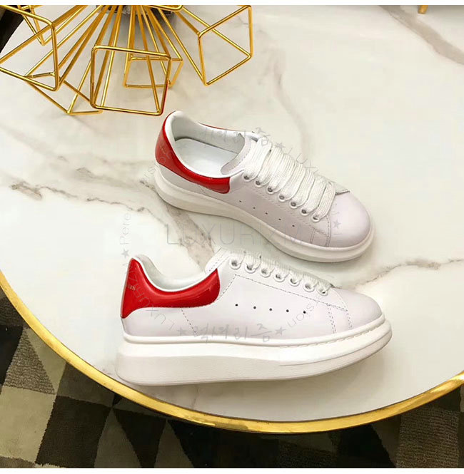 ALEXANDER MCQUEEN-462214 알렉산더 맥퀸 오버솔 화이트 레드 가죽 스니커즈 남녀공용