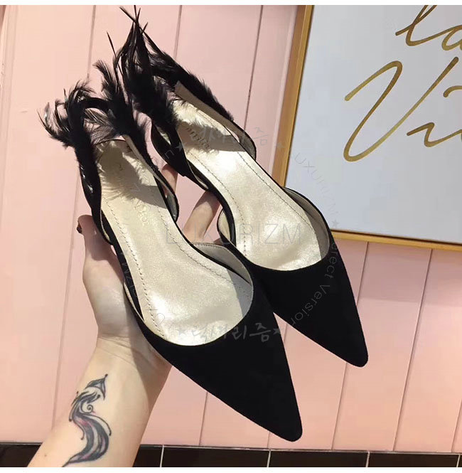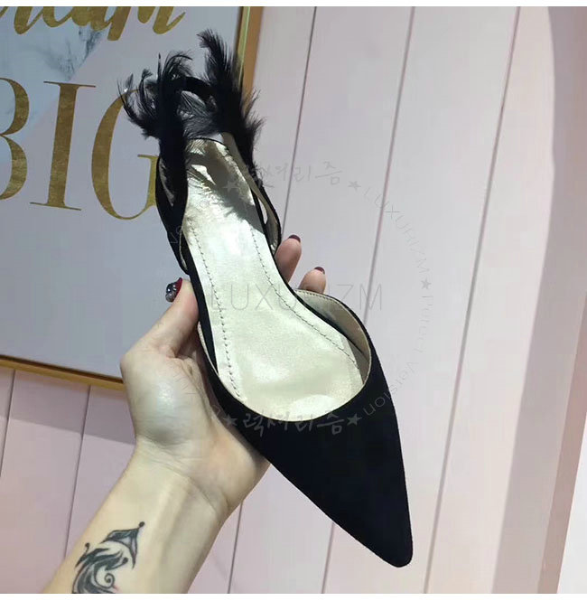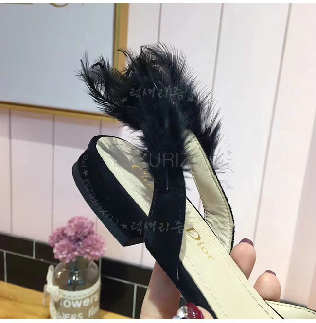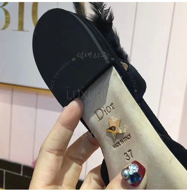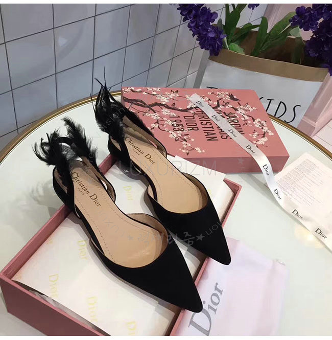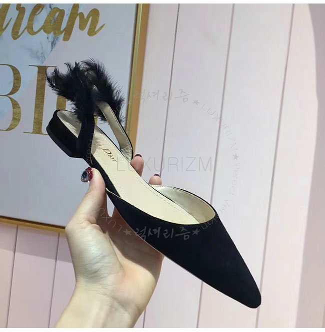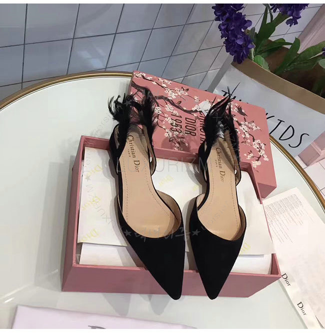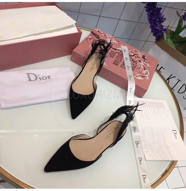 DIOR-KDB404 디올 블랙 깃털 스웨이드 가죽 슬링 백 발레리나 여성용
