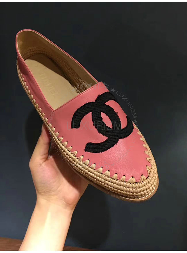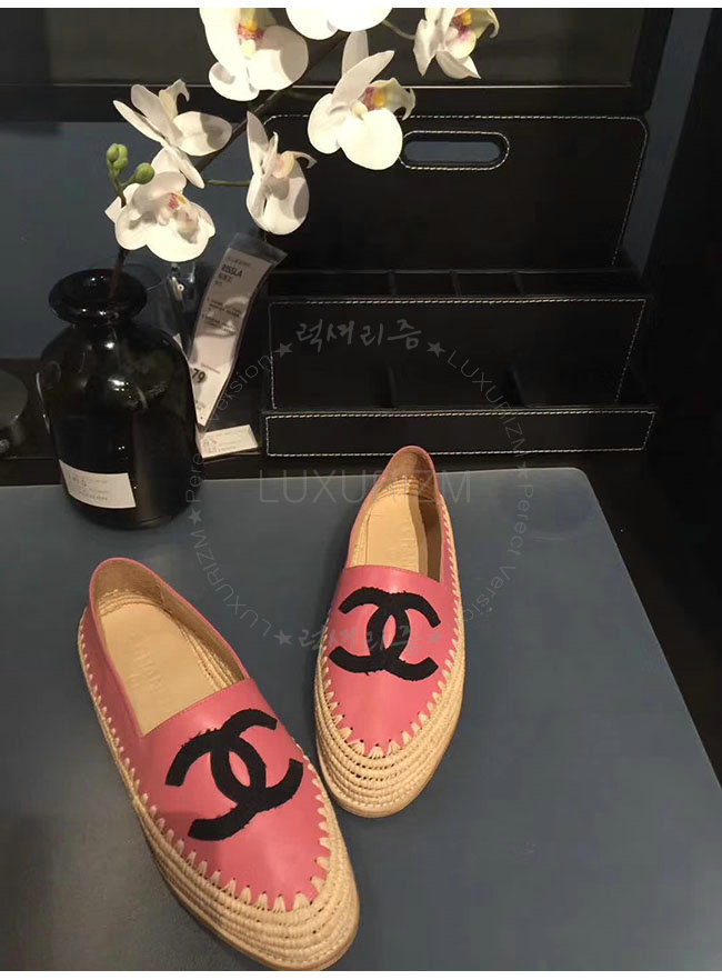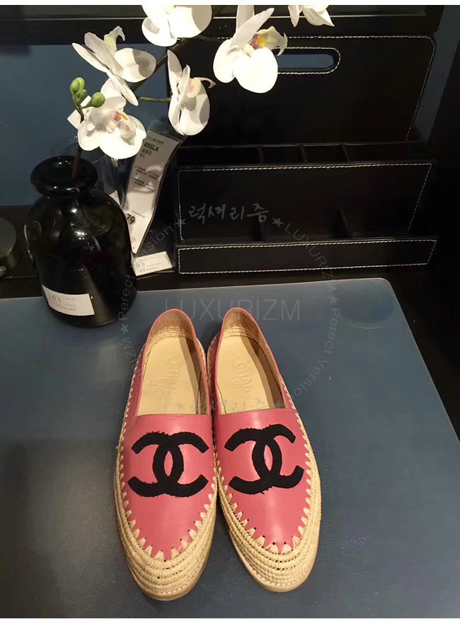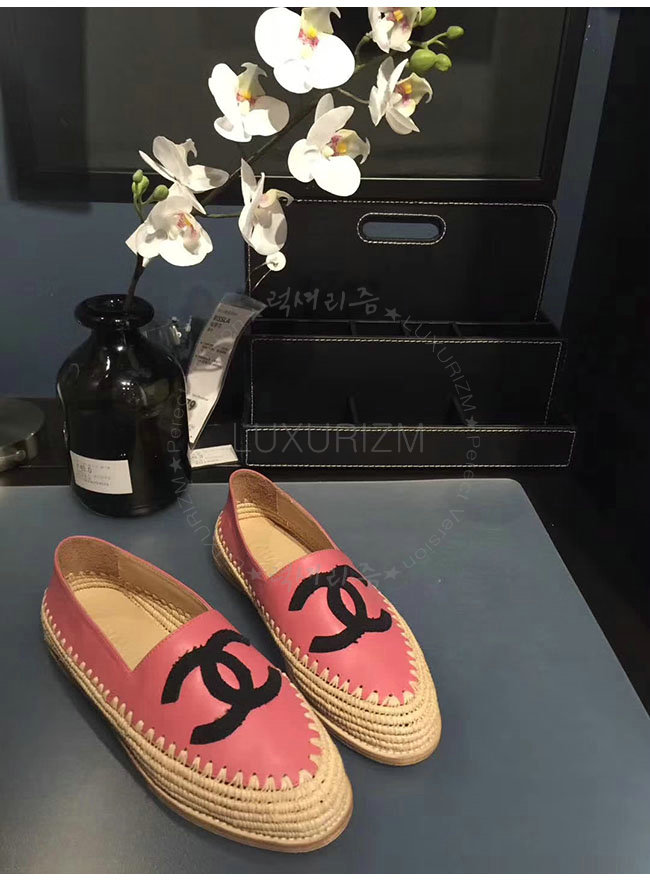 CHANEL-G33559 샤넬 핑크 램스킨 그로그랭 에스파드리유 여성용