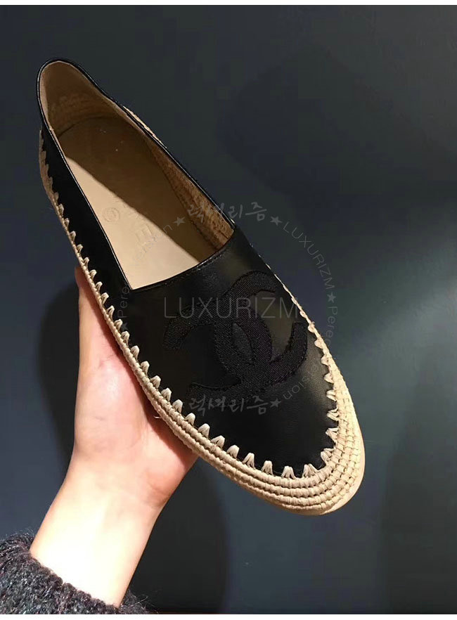 CHANEL-G33559 샤넬 블랙 램스킨 그로그랭 에스파드리유 여성용