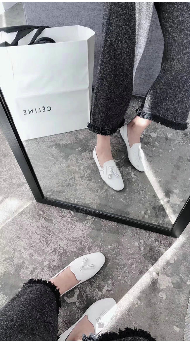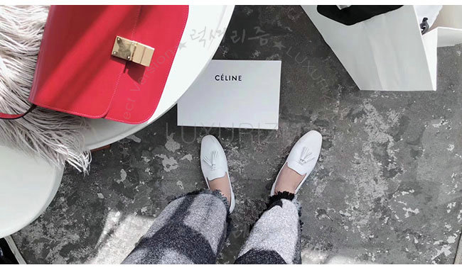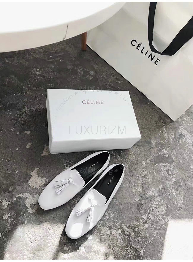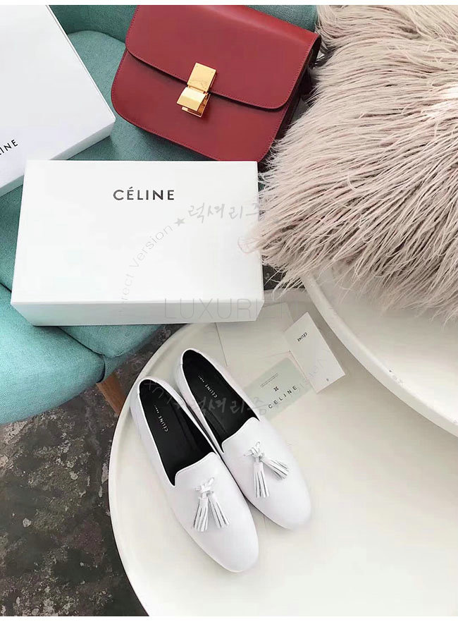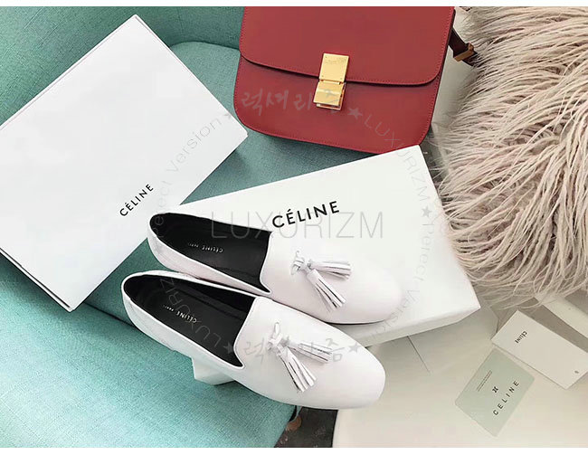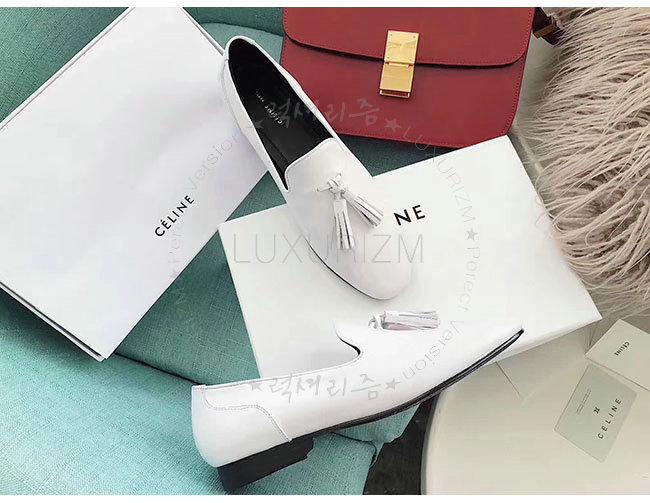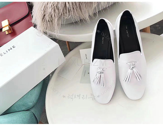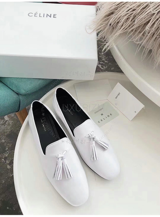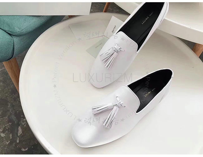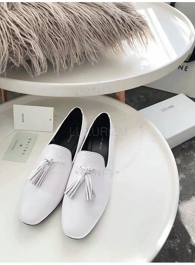 CELINE-322213 셀린느 화이트 가죽 테슬 모카신 여성용