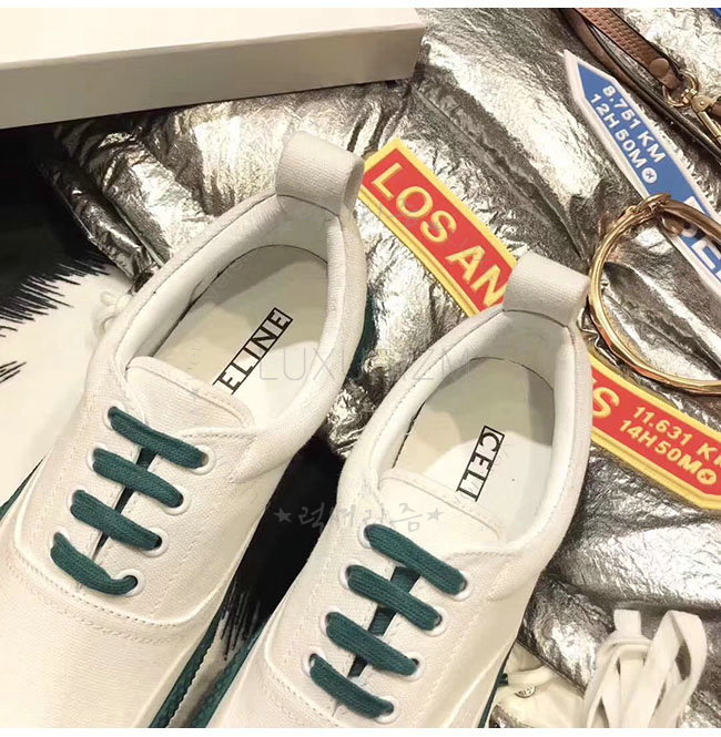 CELINE-323982 셀린느 캔버스 그린 레이스 업 스니커즈 여성용