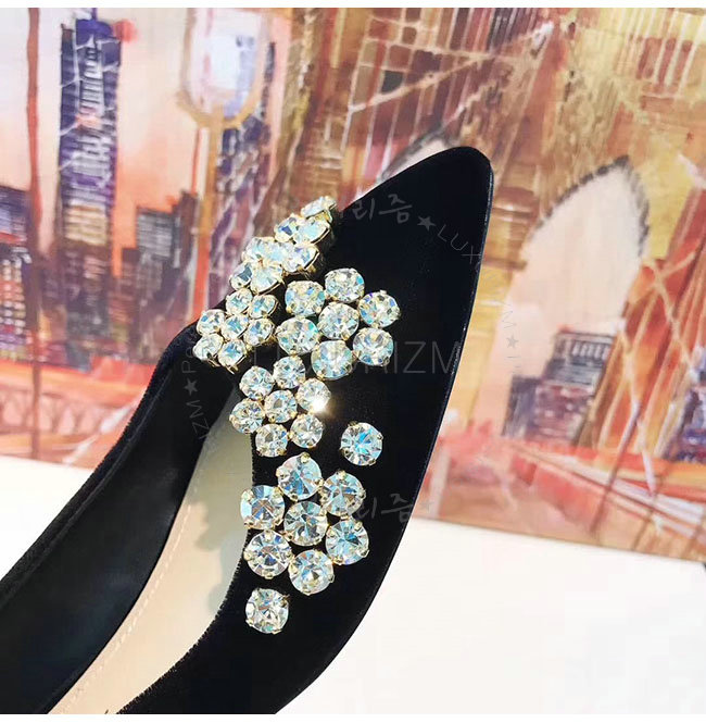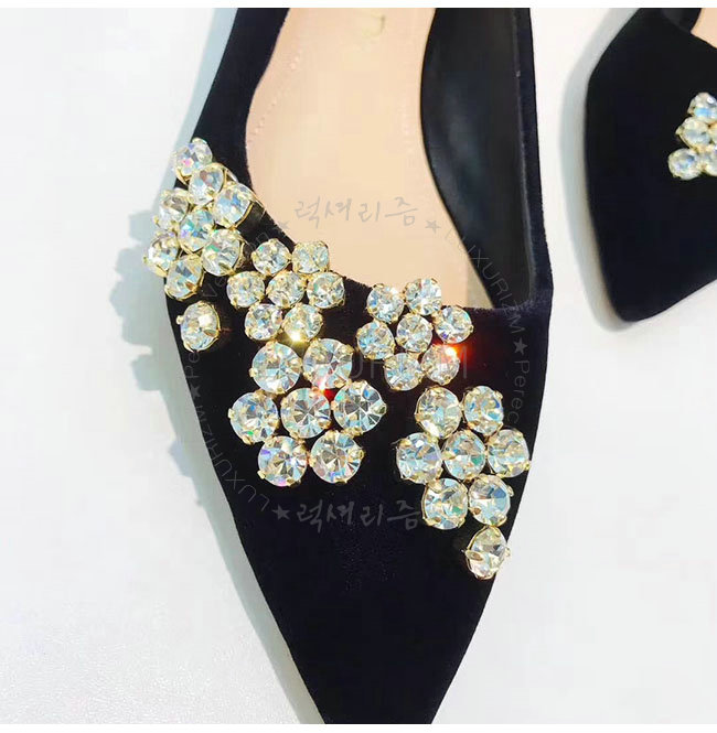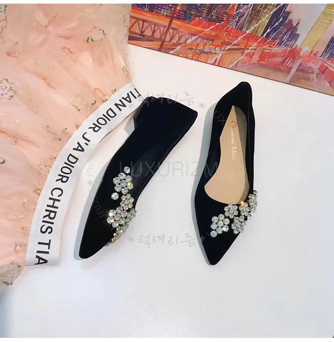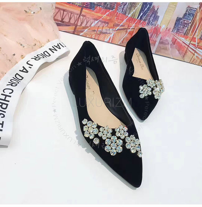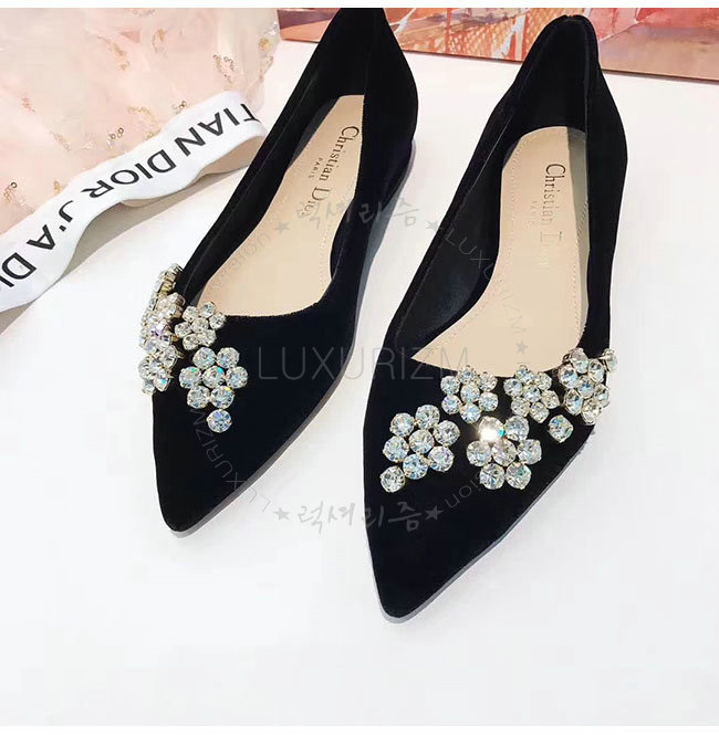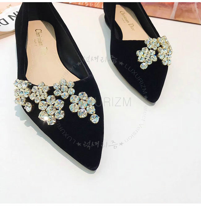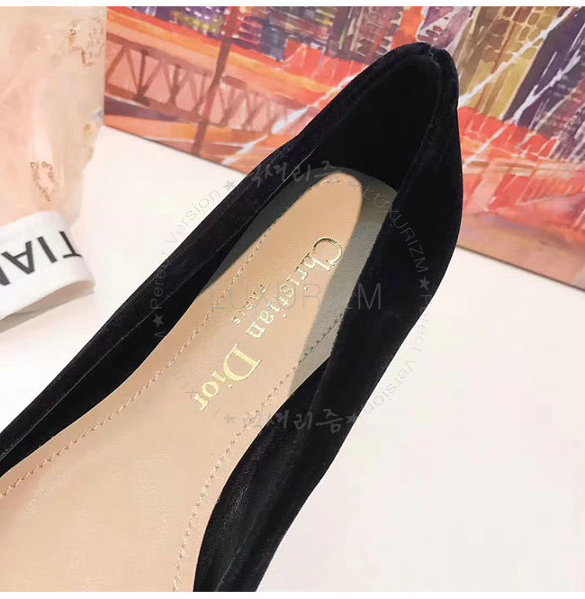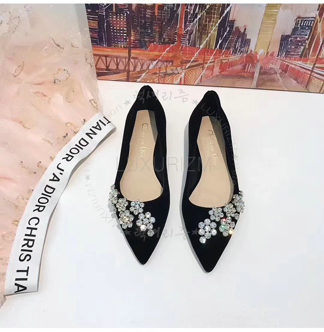 DIOR-KCB405 디올 블랙 벨벳 라인스톤 펌프스 여성용