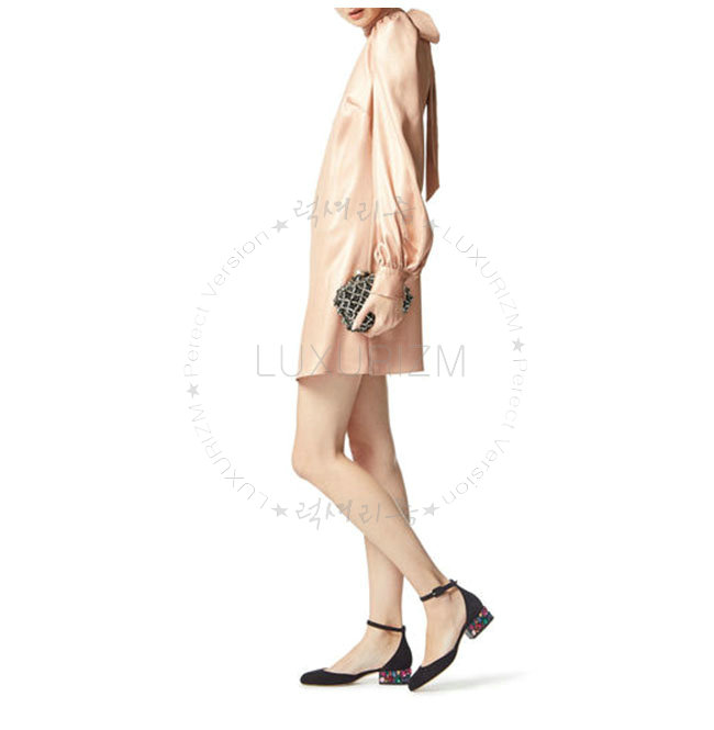 JIMMY CHOO-MARNIE 지미추 연핑크 스웨이드 가죽 라운드 투 마니 장식 힐 펌프스 여성용