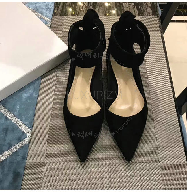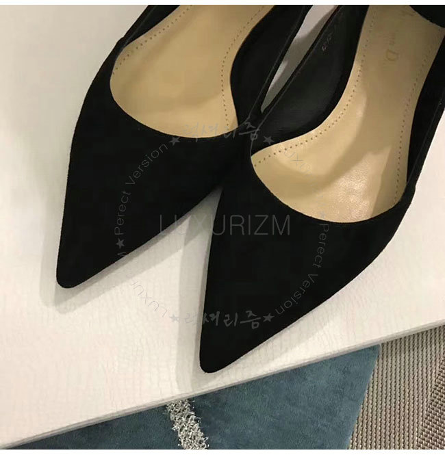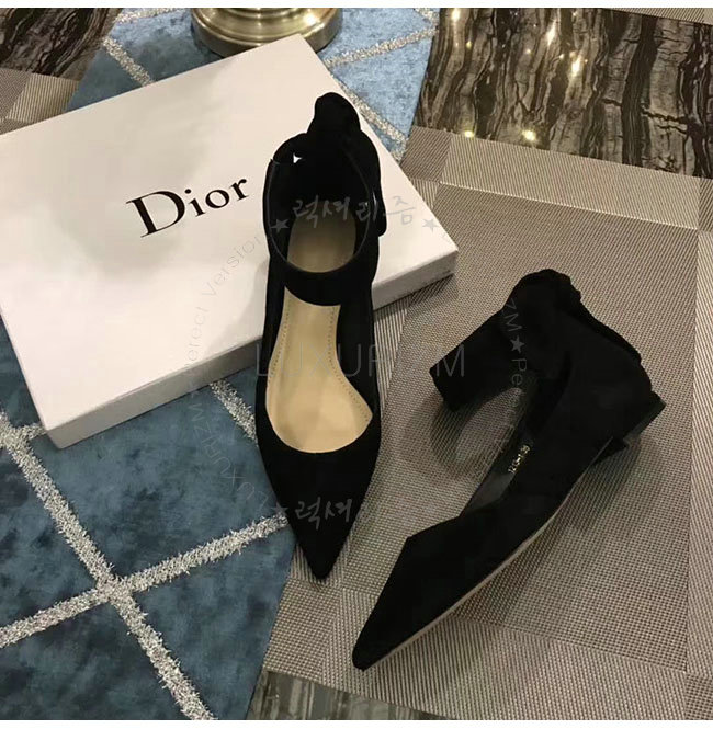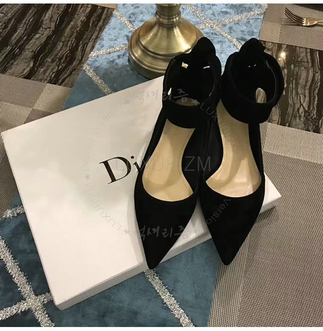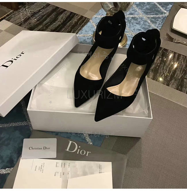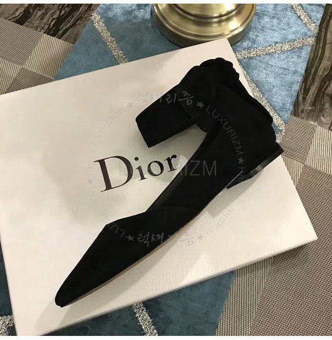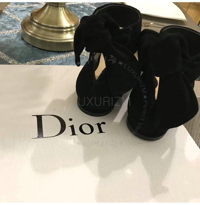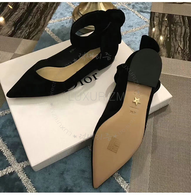 DIOR-KCB406 디올 블랙 스웨이드 양가죽 리본 발레 펌프스 여성용