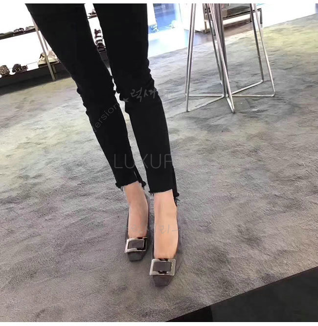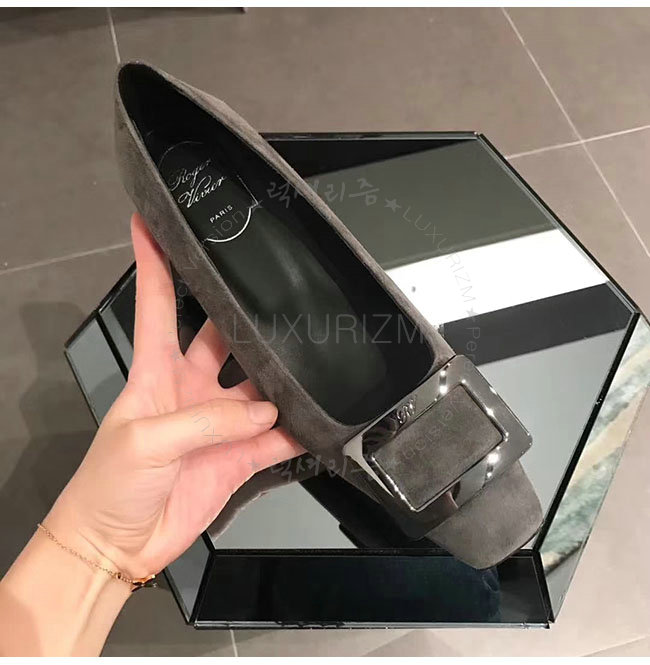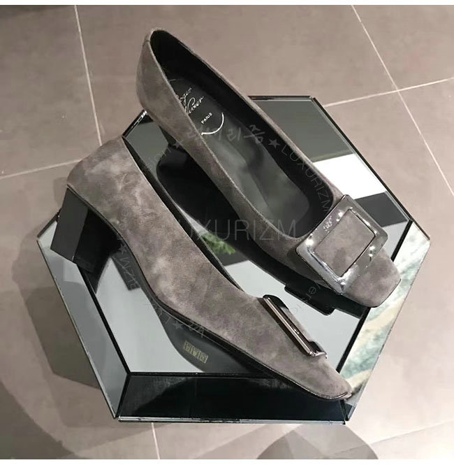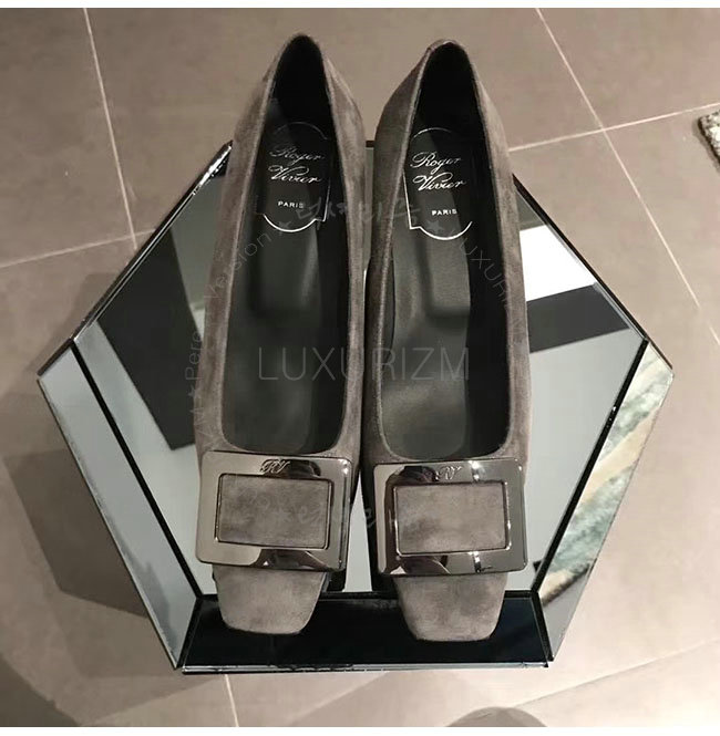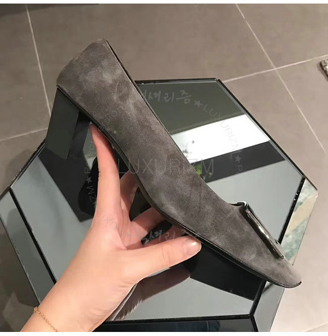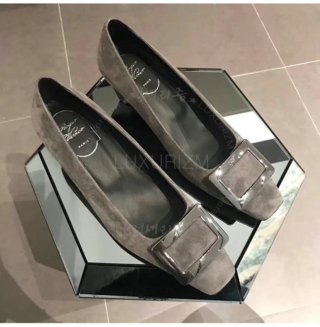 ROGER VIVIER-00600920 로저비비에 그레이 스웨이드 양가죽 벨 비벌 펌프스 여성용