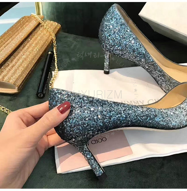 JIMMY CHOO-ROMY 지미추 화이트 블루 글리터 패브릭 로미 펌프스 여성용 (2종류)