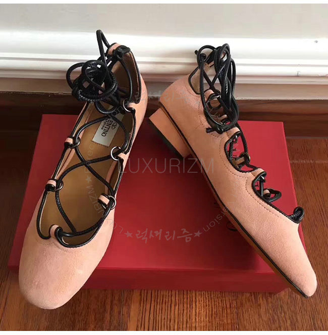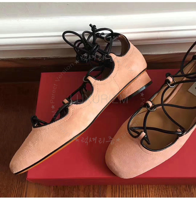 VALENTINO-NW1S0D 발렌티노 연핑크 스웨이드 양가죽 발레리나 플랫 슈즈 여성용