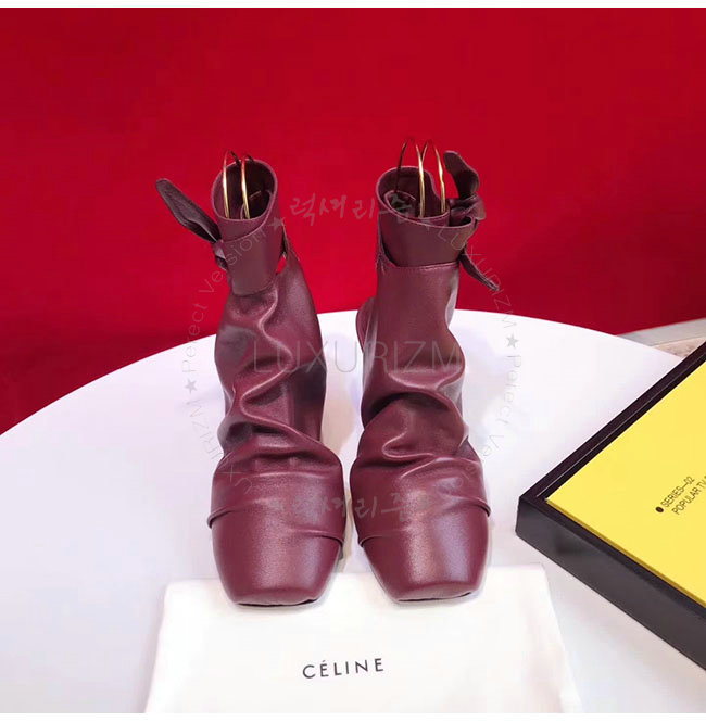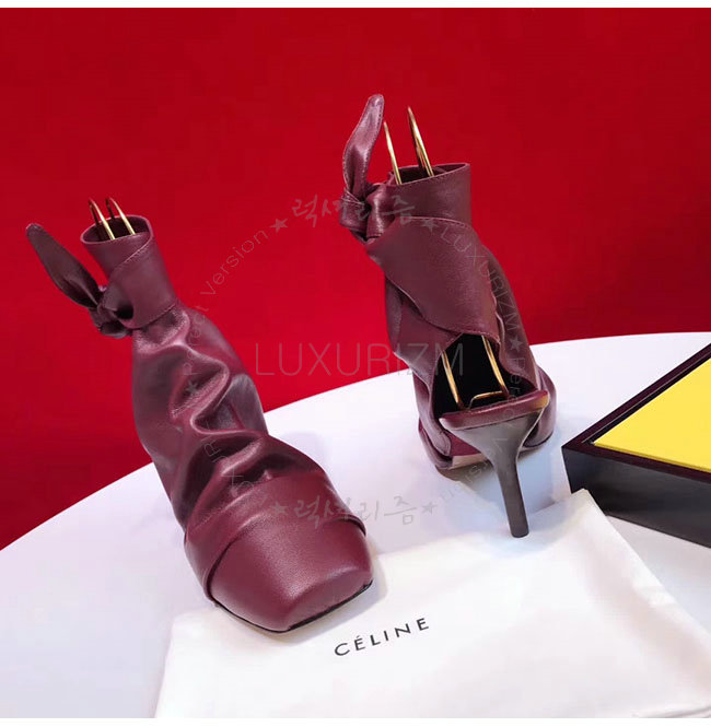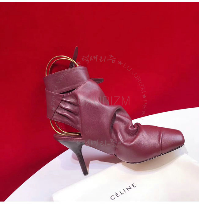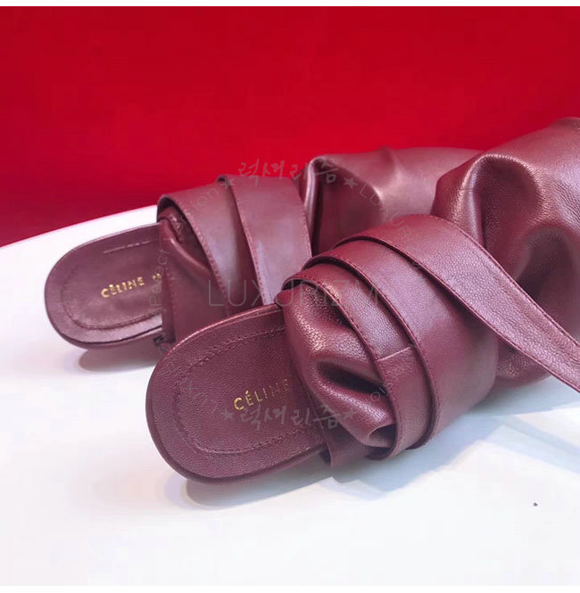 CELINE-323883 셀린느 버건디 램스킨 랩핑 배클리스 펌프스 여성용