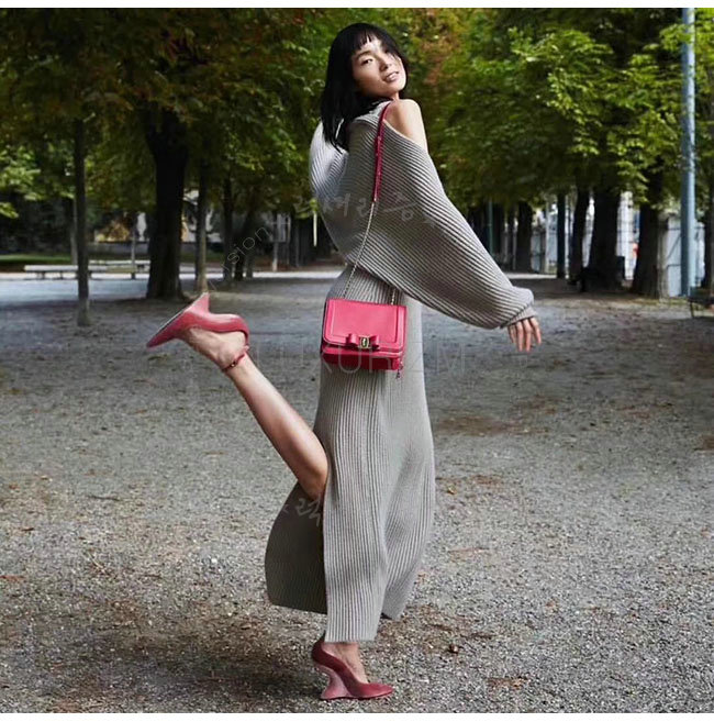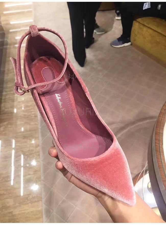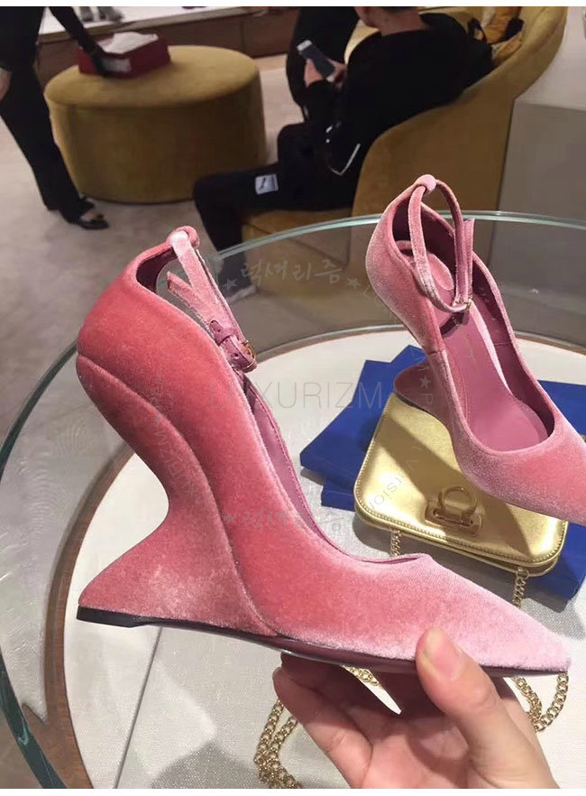 [스페셜오더]FERRAGAMO-01M991 페라가모 핑크 벨벳 티볼리 V 펌프스 여성용