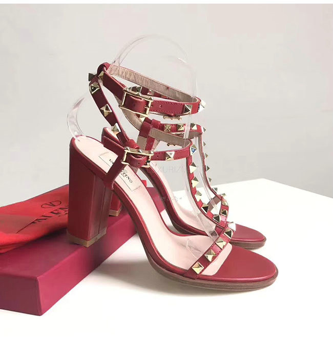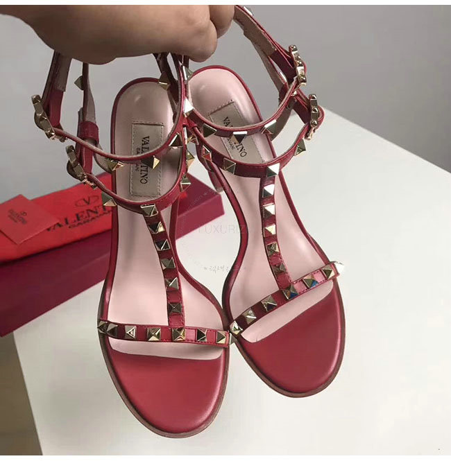 VALENTINO-PY2S07 발렌티노 레드 카프스킨 락스터드 샌들 펌프스 여성용