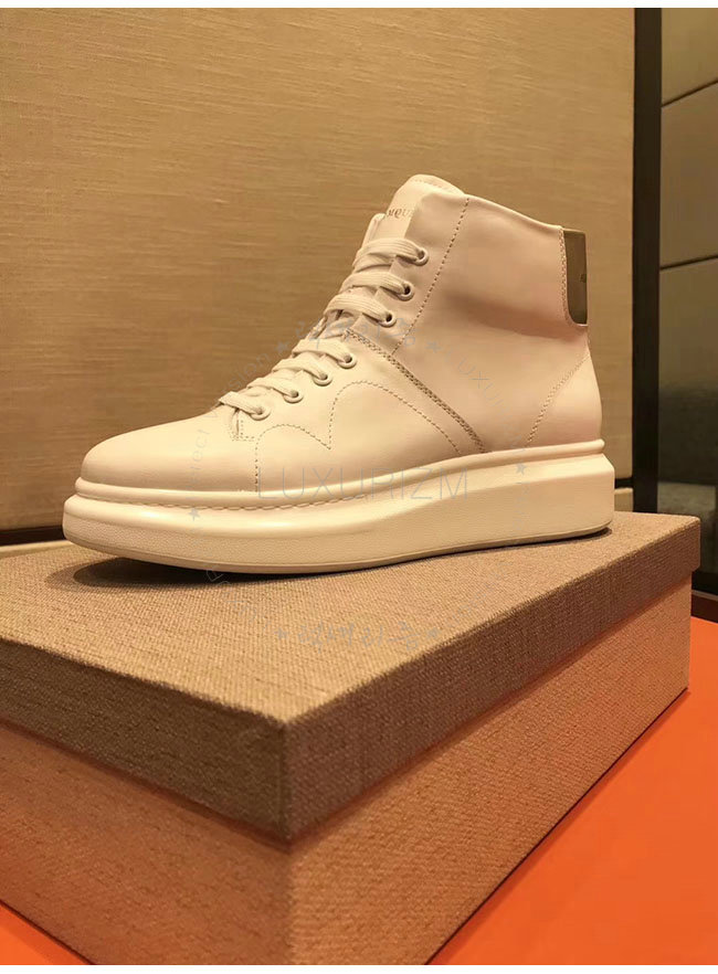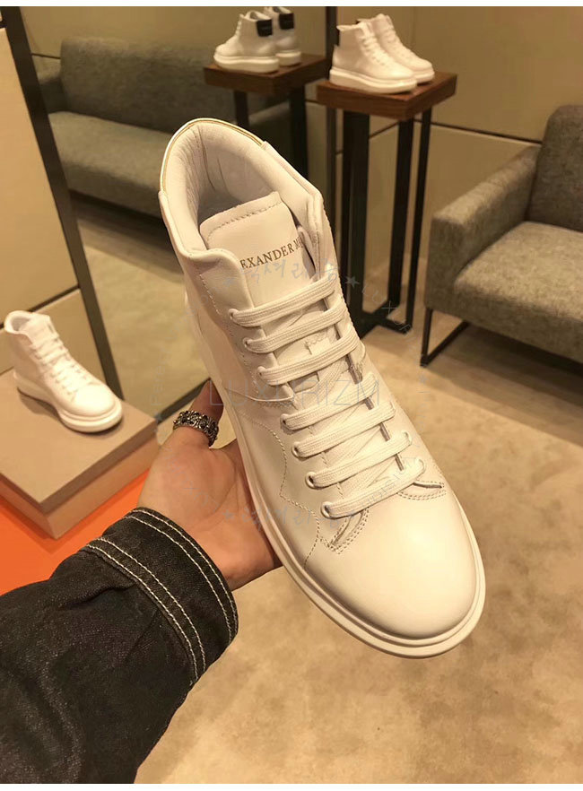 ALEXANDER MCQUEEN-493584 알렉산더 맥퀸 오버솔 화이트 블랙 가죽 하이탑 런닝화 남성용