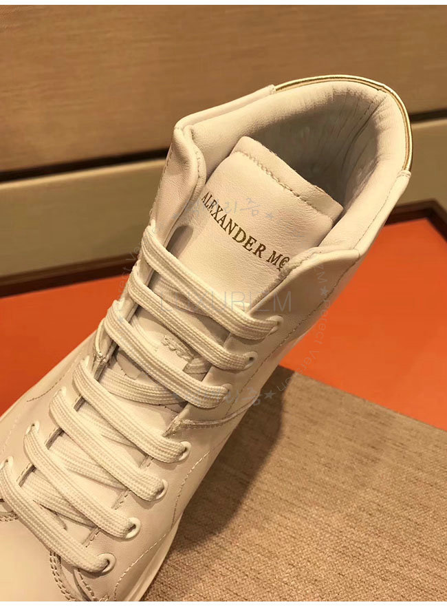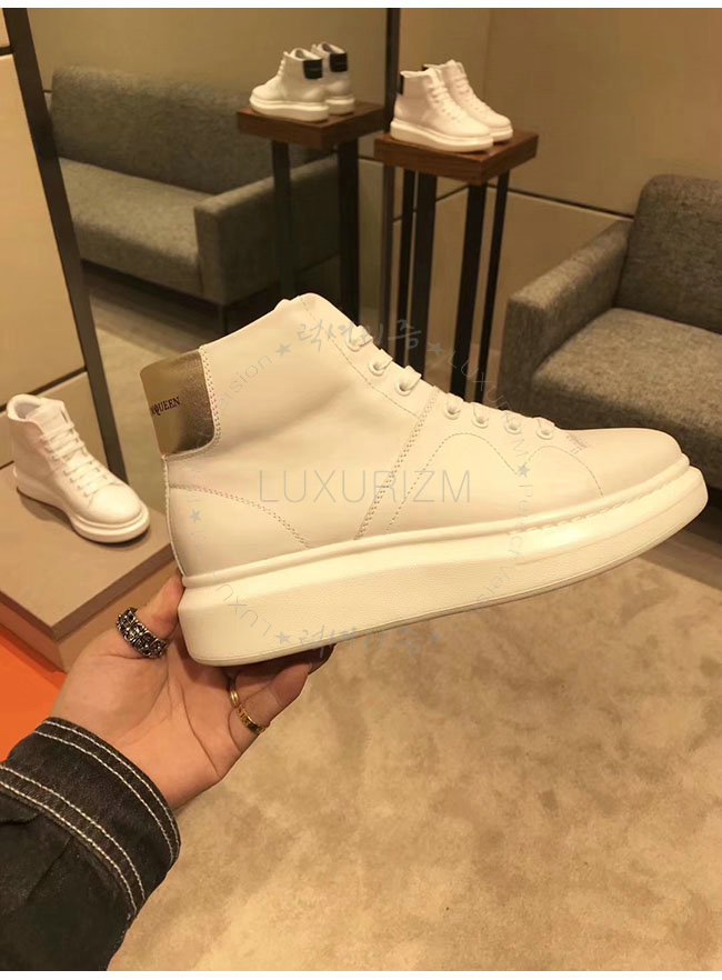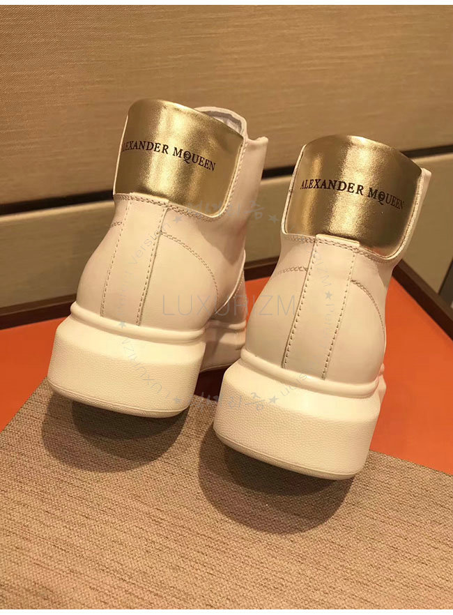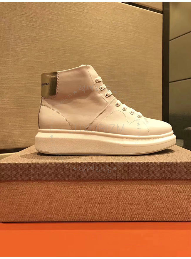 ALEXANDER MCQUEEN-493584 알렉산더 맥퀸 오버솔 화이트 골드 가죽 하이탑 런닝화 남성용