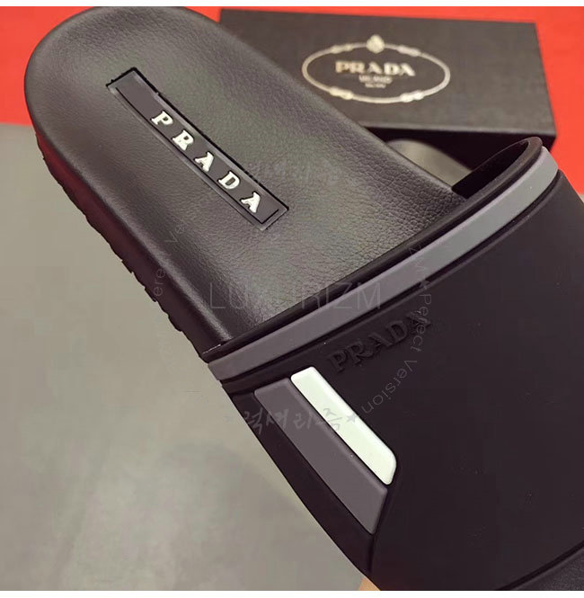 PRADA-4X3102 프라다 블랙 고무 슬라이드 슬리퍼 남성용