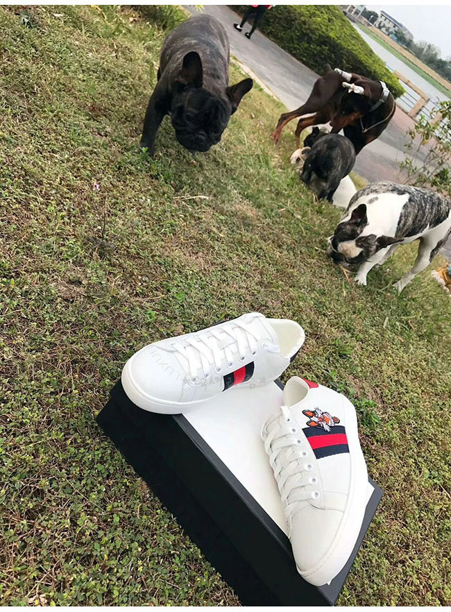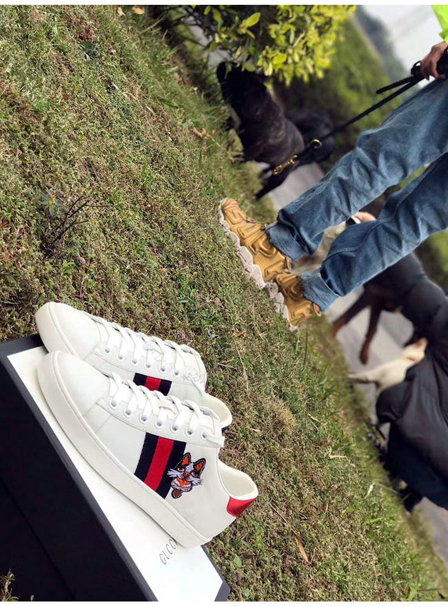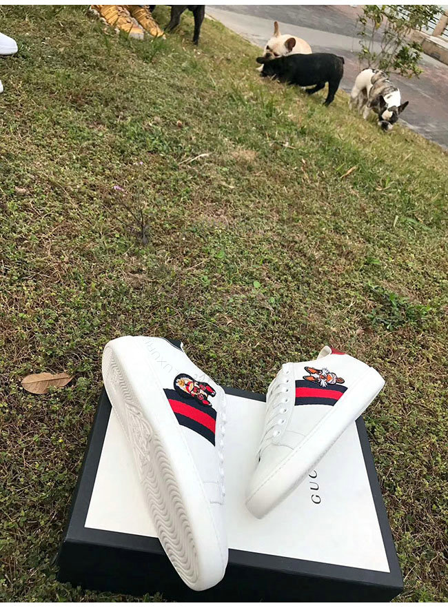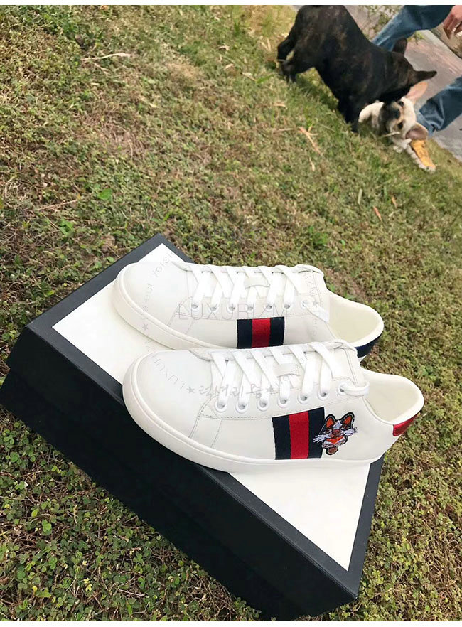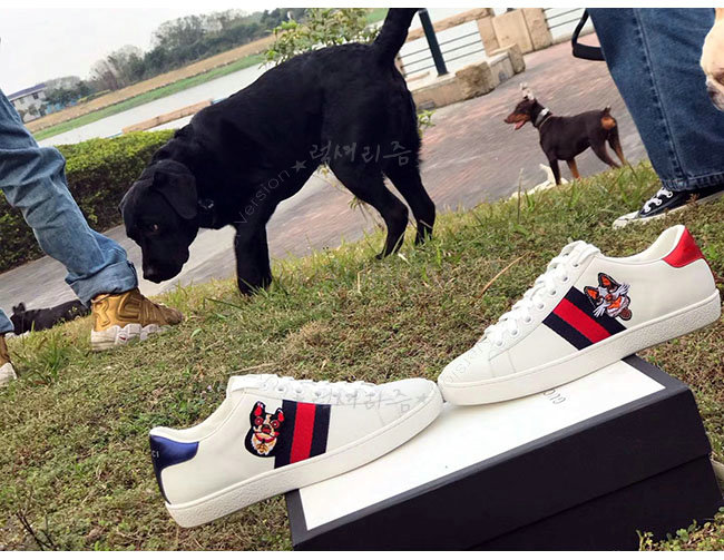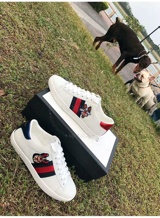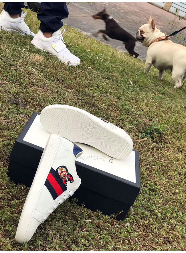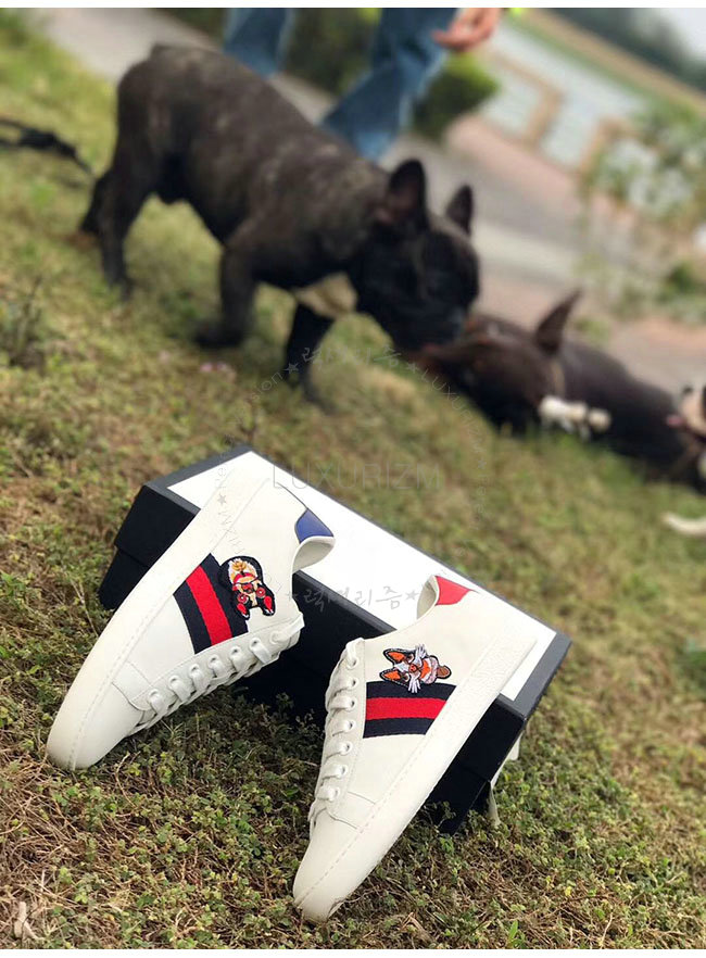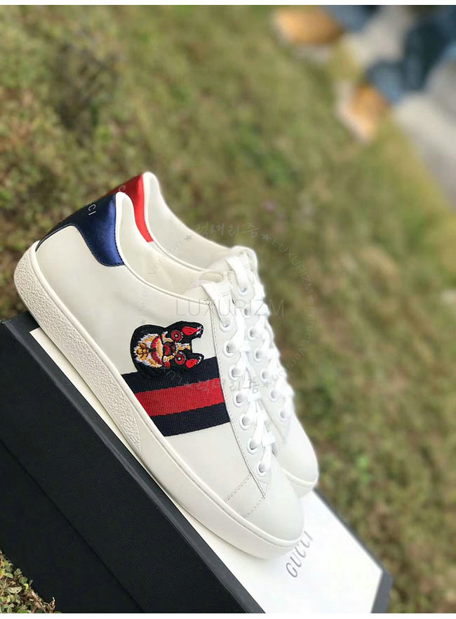 GUCCI-501908 9095 구찌 에이스 로드 자수 화이트 가죽 로우탑 스니커즈 남녀공용