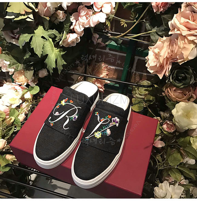 ROGER VIVIER-40321260 로저비비에 블랙 데님 스니키 블루밍 뮬 여성용