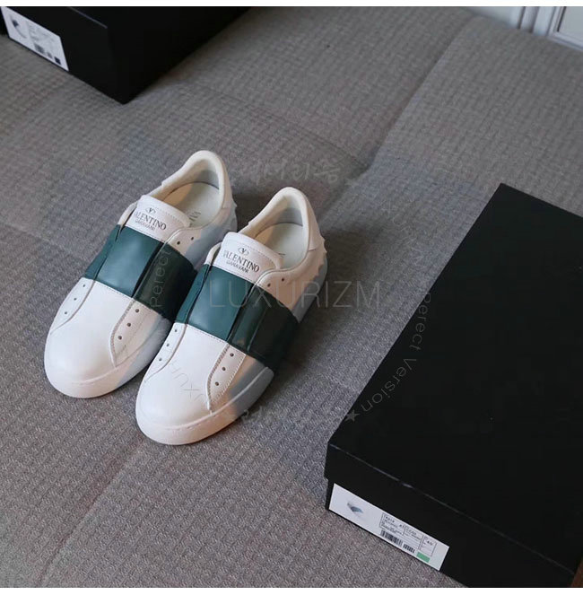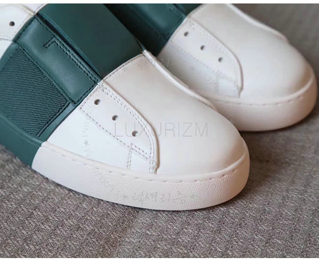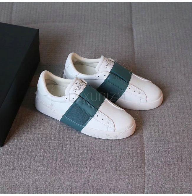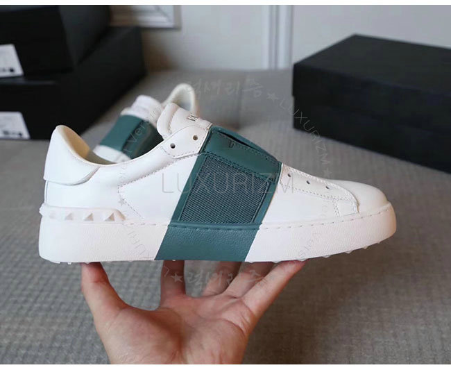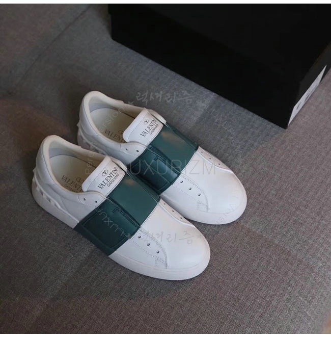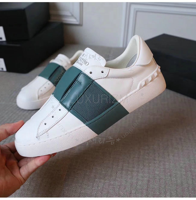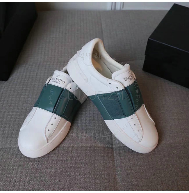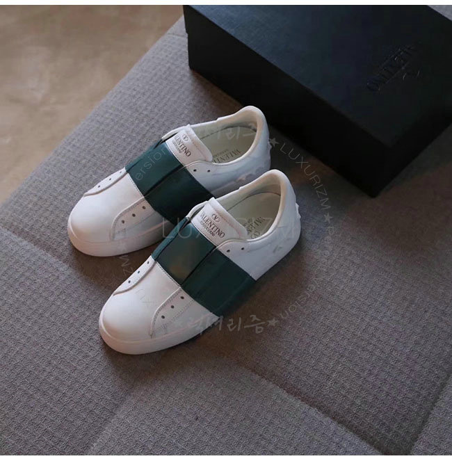 VALENTINO-2S0938 발렌티노 엘라스틱 밴드 화이트 그린 가죽 스니커즈 남녀공용