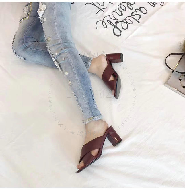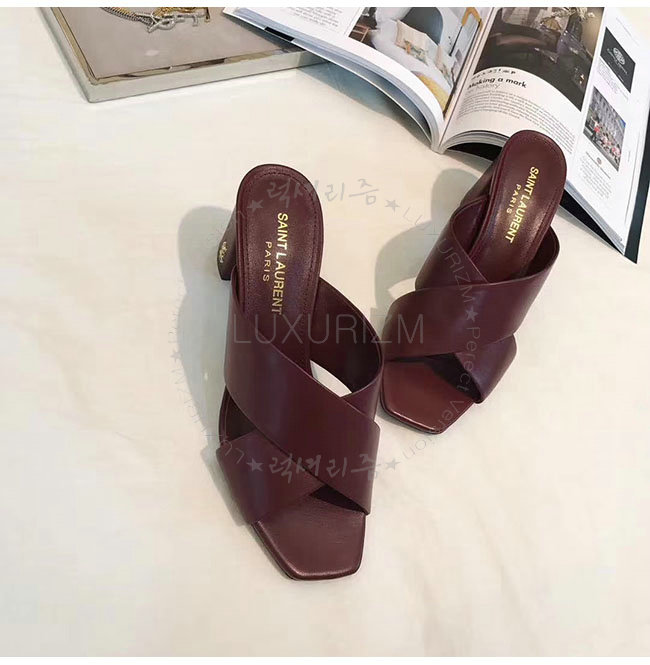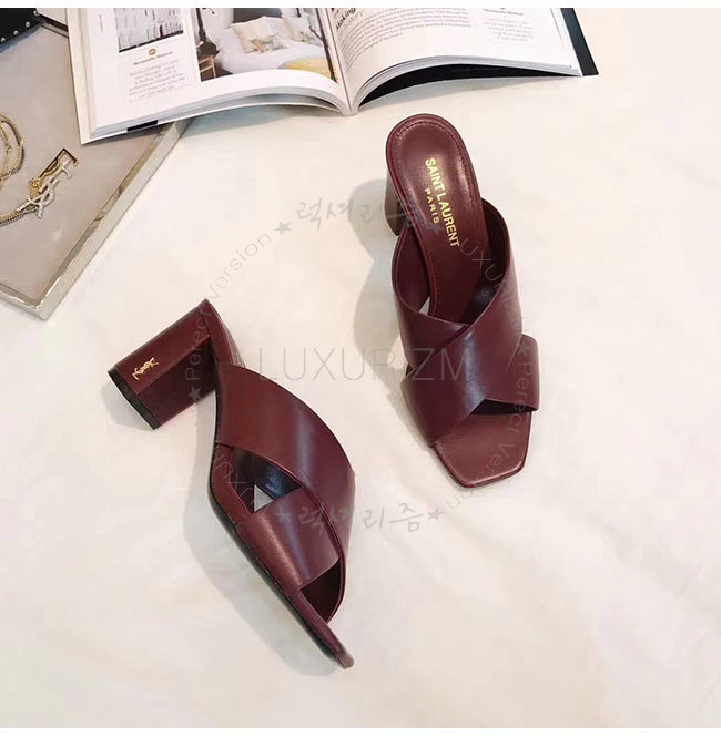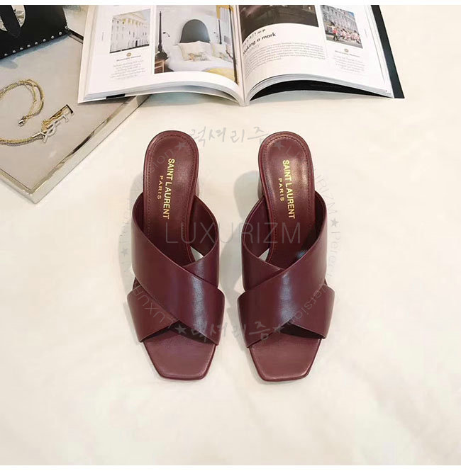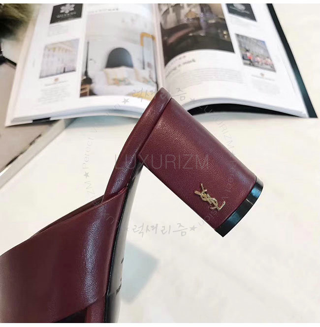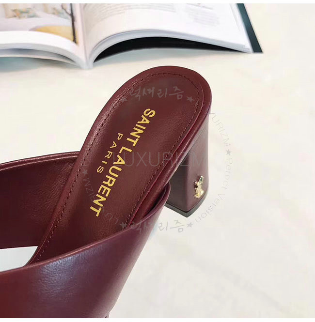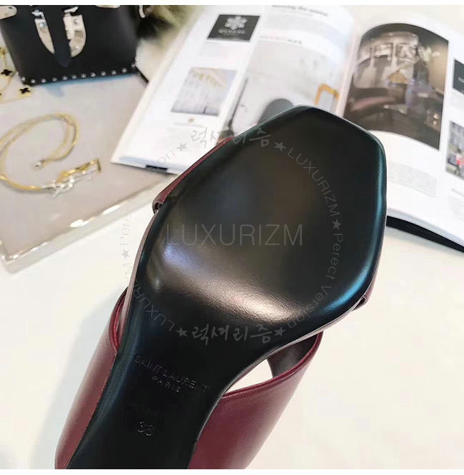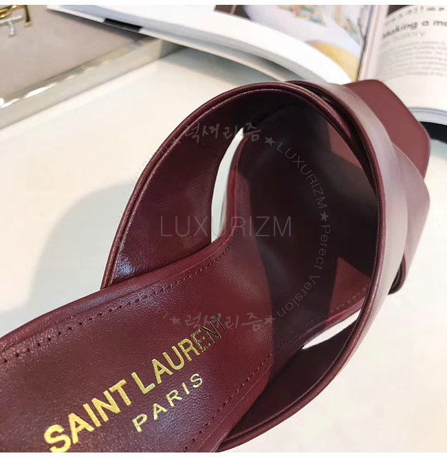 SAINT LAURENT-509357 생로랑 버건디 가죽 루루 라이드 샌들 펌프스 여성용