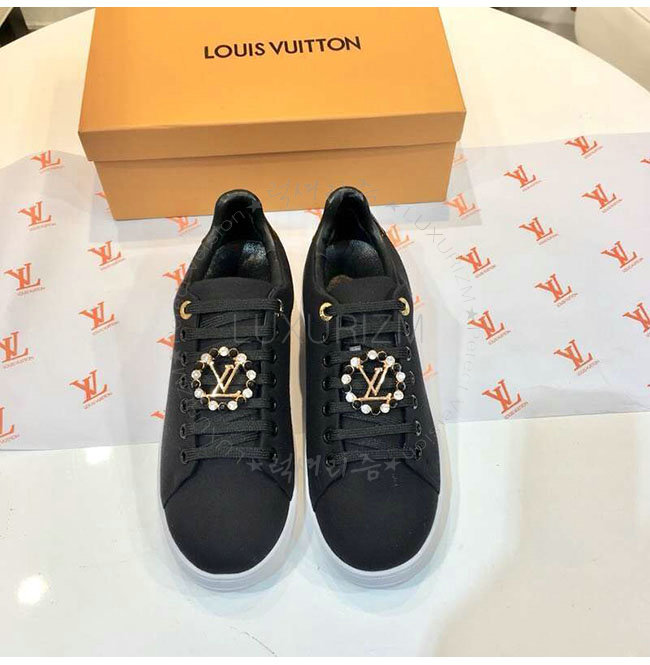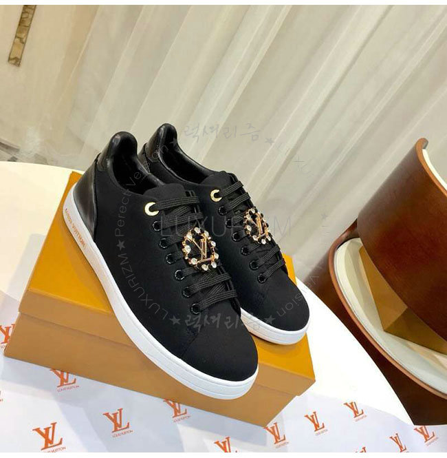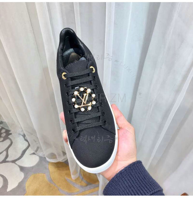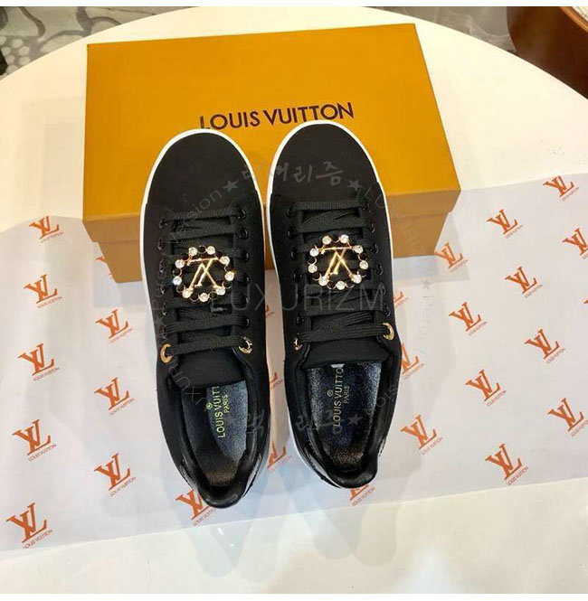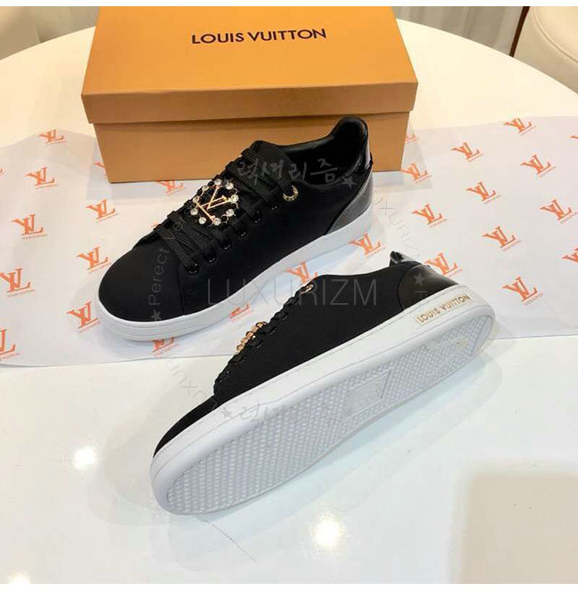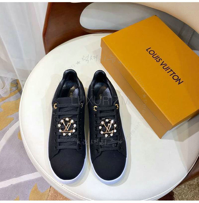 LOUIS VUITTON-1A3RHA 루이비통 블랙 새틴 프론트로우 스니커즈 여성용
