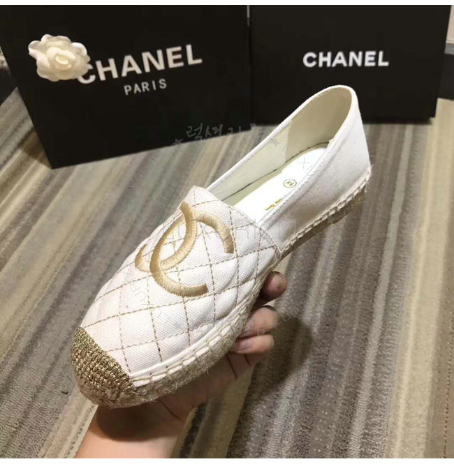 CHANEL-G32910 샤넬 페브릭 골드 화이트 에스파드리유
