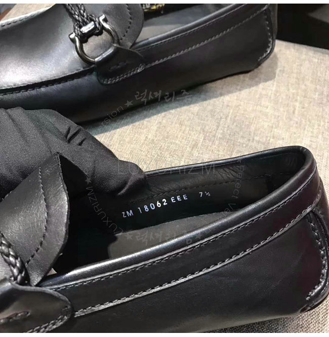 FERRAGAMO-02A220 페라가모 카프스킨 블랙 간치오 모카신