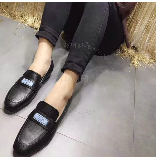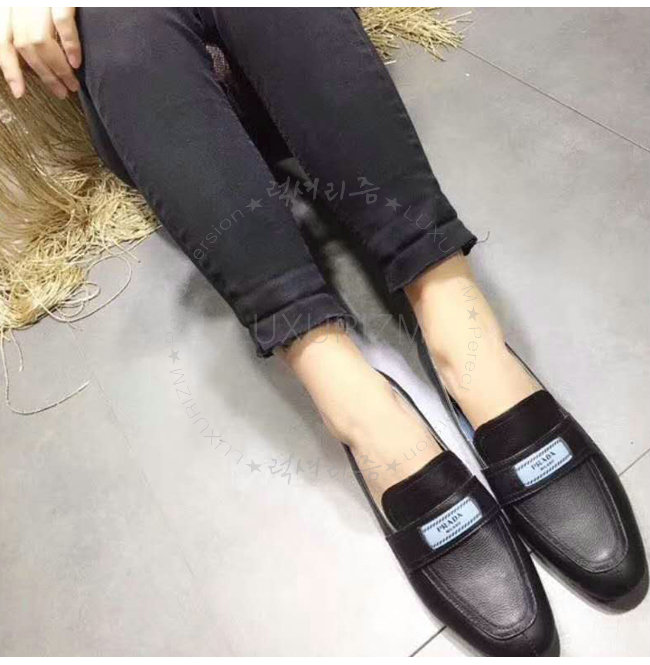 PRADA-1D485I 프라다 송아지 가죽 블랙 에티켓 모카신