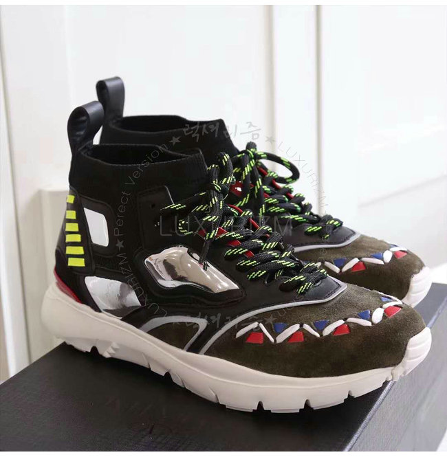 VALENTINO-PY0S0A71 발렌티노 송아지 가죽 블랙 카키 히어로 리플렉스 스니커즈(남여공용)