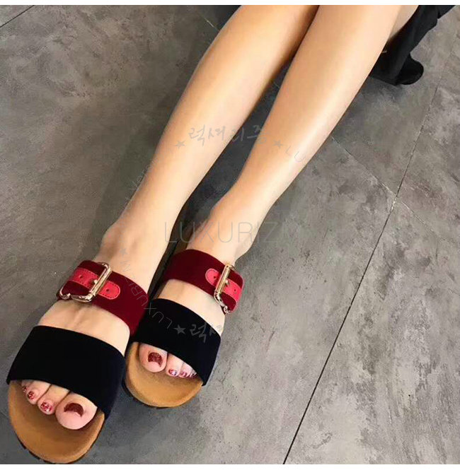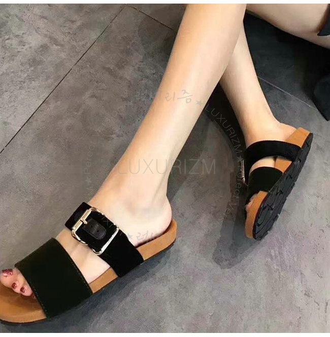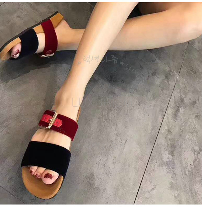 벨벳 밴드 2개가 있는 갑피 골드톤 메탈 버클 15mm 인체공학적 스웨이드 안창 고무 밑창.