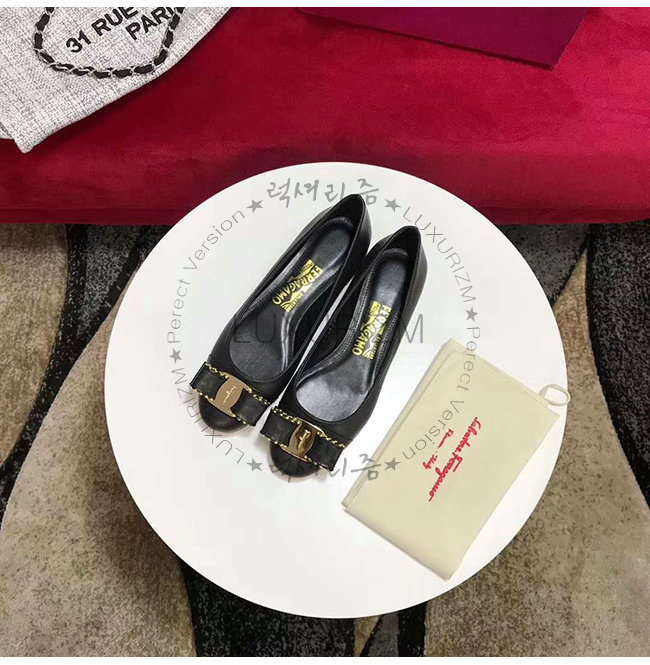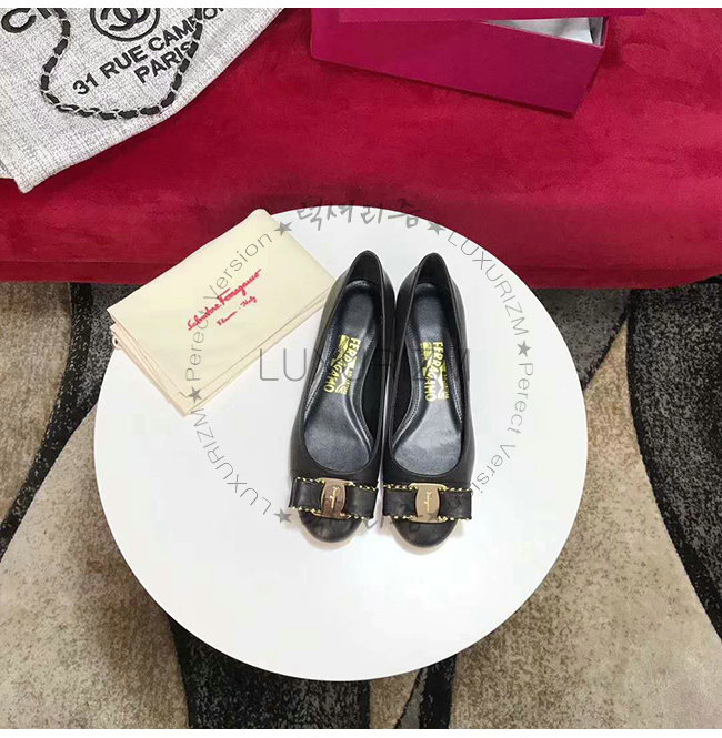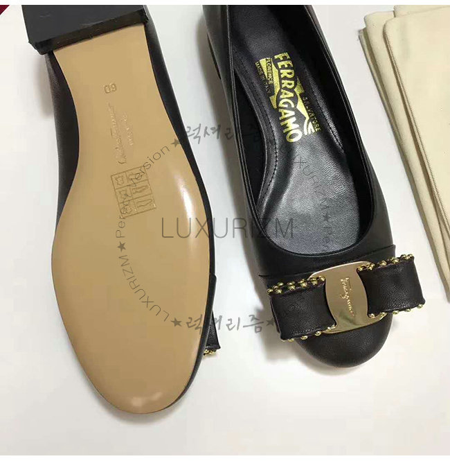 FERRAGAMO-01N554 페라가모 램스킨 스터드 장식 블랙 바리나 발레리나