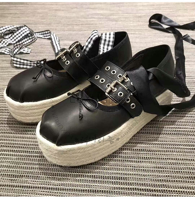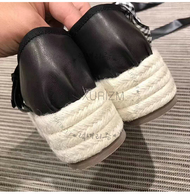 MIUMIU-5F767A 미우미우 벨트 장식 블랙 새틴 에스파드리유