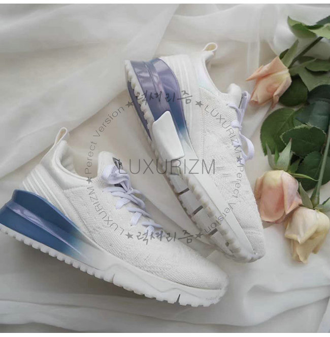 광택 처리된 고무 소재의 밑창과 니트 소재를 사용한 어퍼가 매력적인 스니커즈입니다.