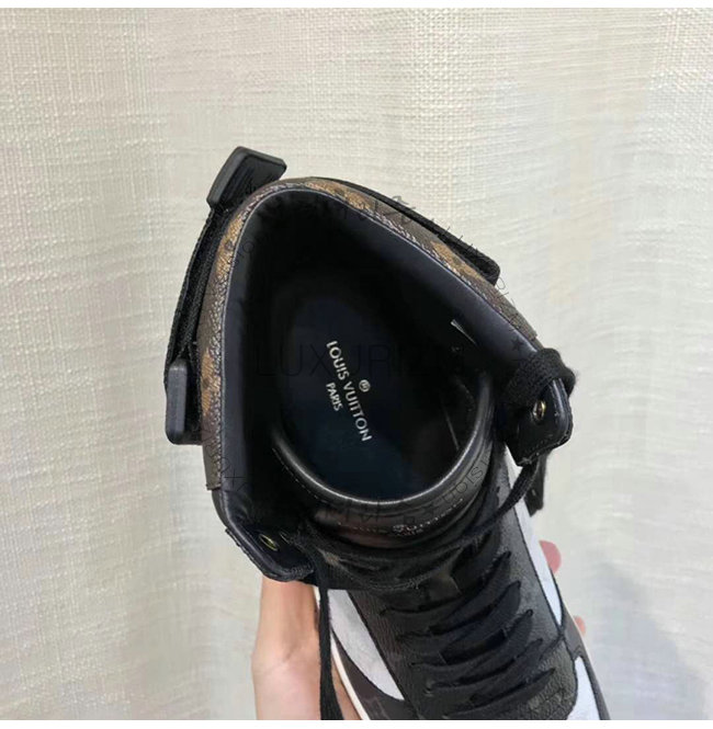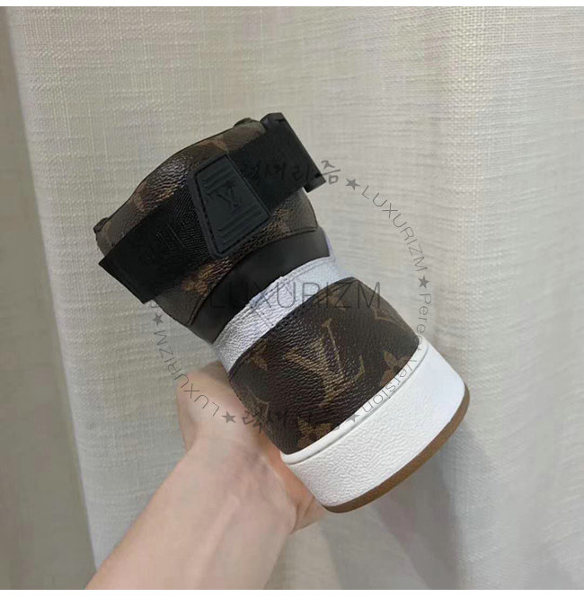 독특한 하이 탑 스니커즈입니다. 신발 혀와 벨크로 스트랩에 골드 Louis Vuitton