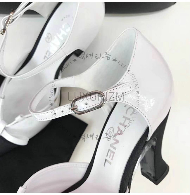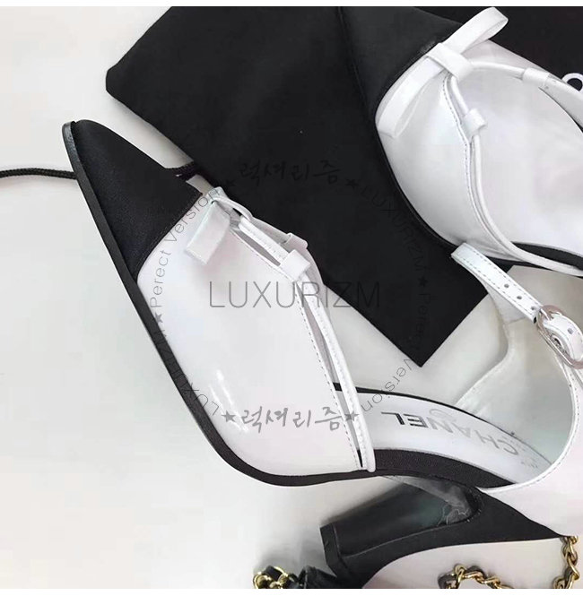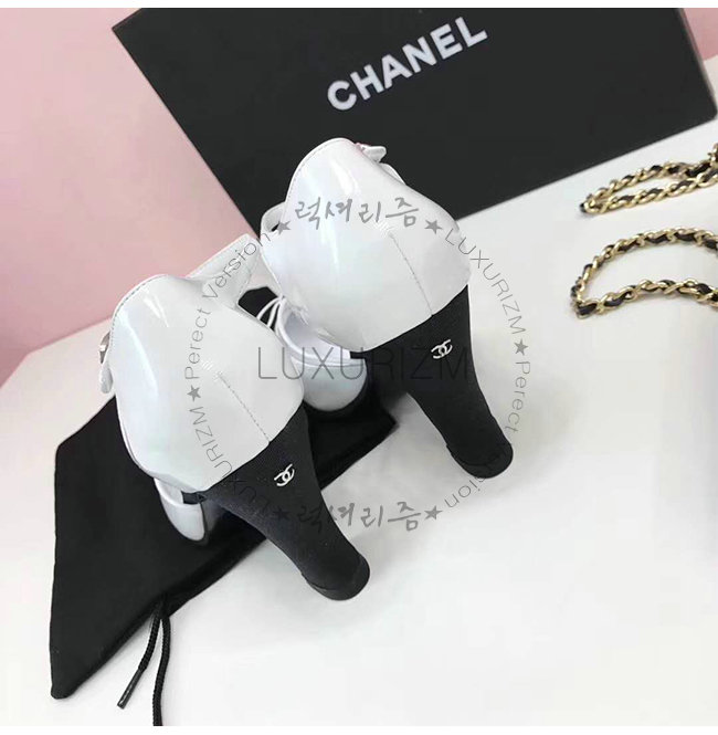CHANEL-G33888 샤넬 화이트 카프스킨 사틴 펌프스