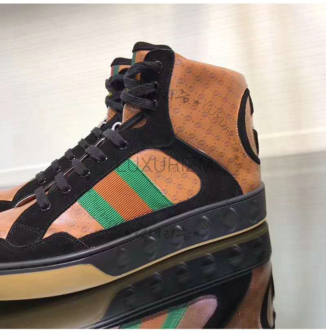 [스페셜오더]GUCCI-536839 1090 구찌 블랙 GG 가죽 Gucci Dapper Dan 하이탑 스니커즈