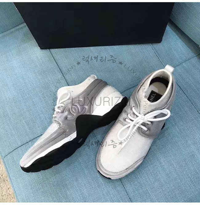 CHANEL-G33729 샤넬 그레이 화이트 벨벳 스트레치 패브릭 스니커즈