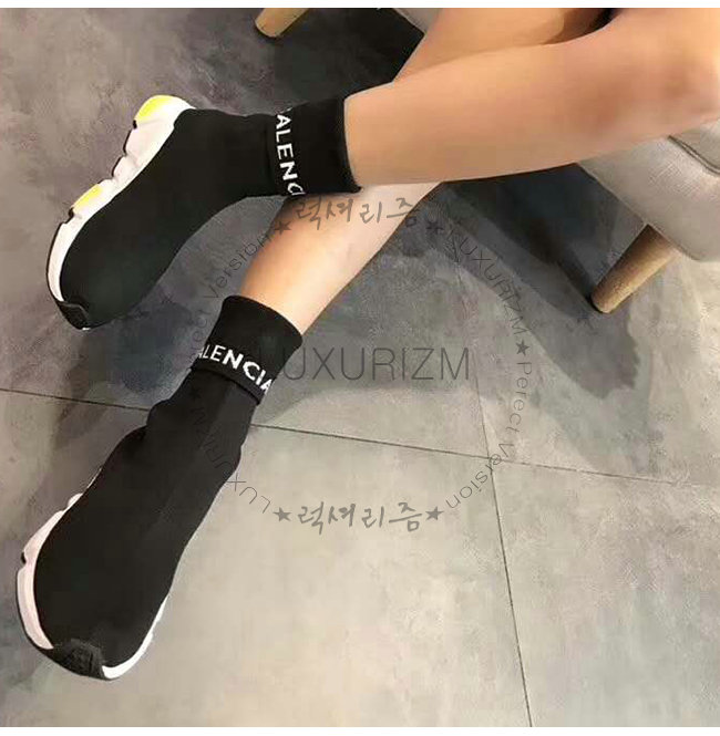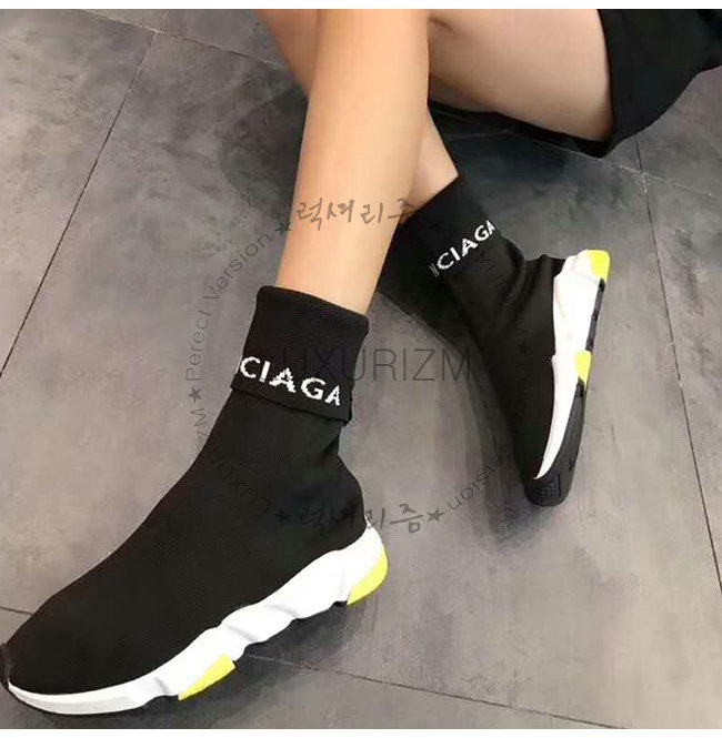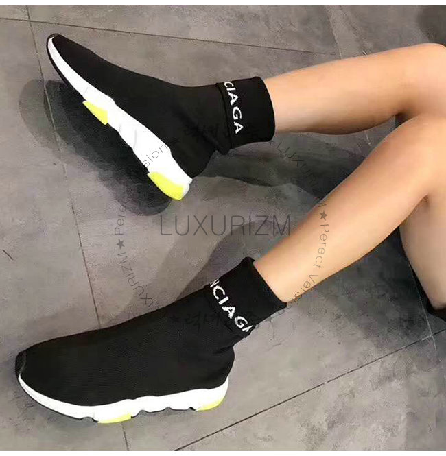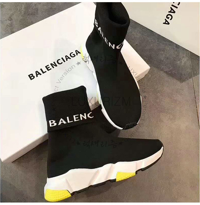 BALENCIAGA-525725 발렌시아가 블랙 니트 로고 장식 스피드 트레이너