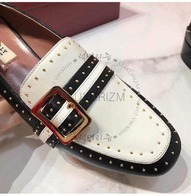 BALLY-6223338 발리 블랙 화이트 카프스킨 스터드 장식 JANELLE 펌프스