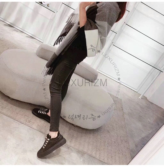 모피 장식이있는 나뭇결의 누벅 송아지 가죽으로 이번 시즌 튼튼한 새로운 모습을 보여줍니다.