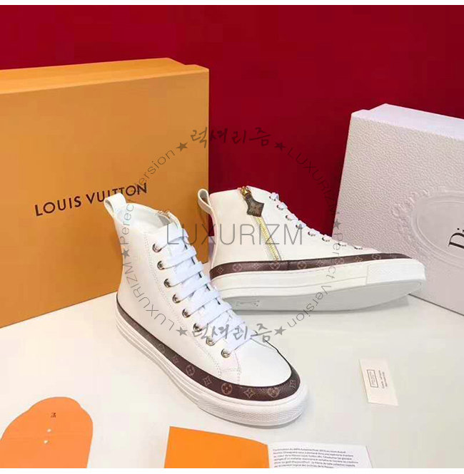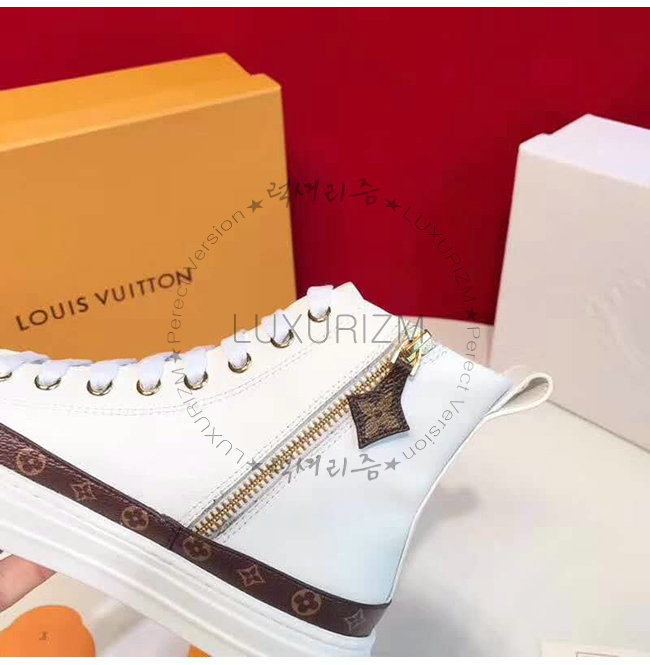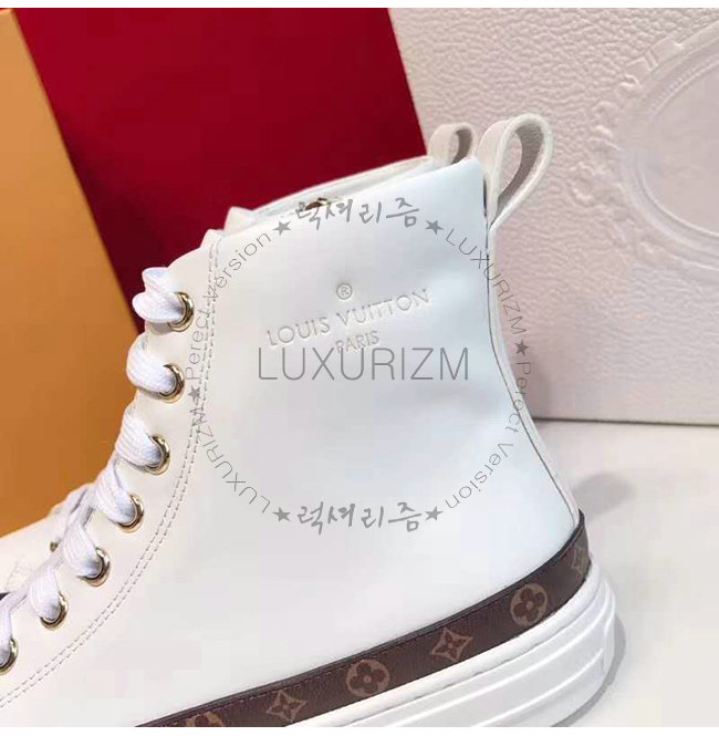 LOUIS VUITTON-1A4FTT 루이비통 화이트 송아지 가죽 모노그램 트리밍 스텔라 스니커 부츠