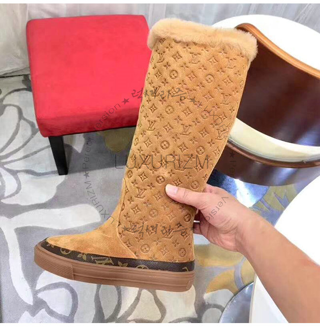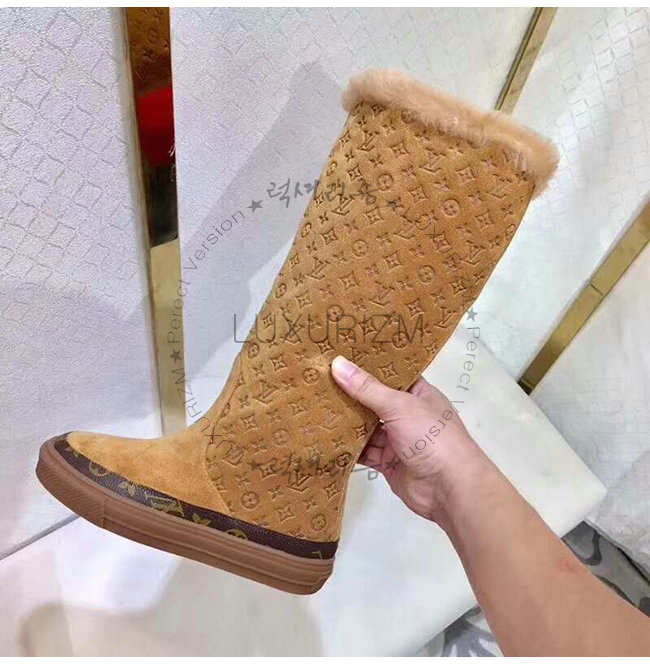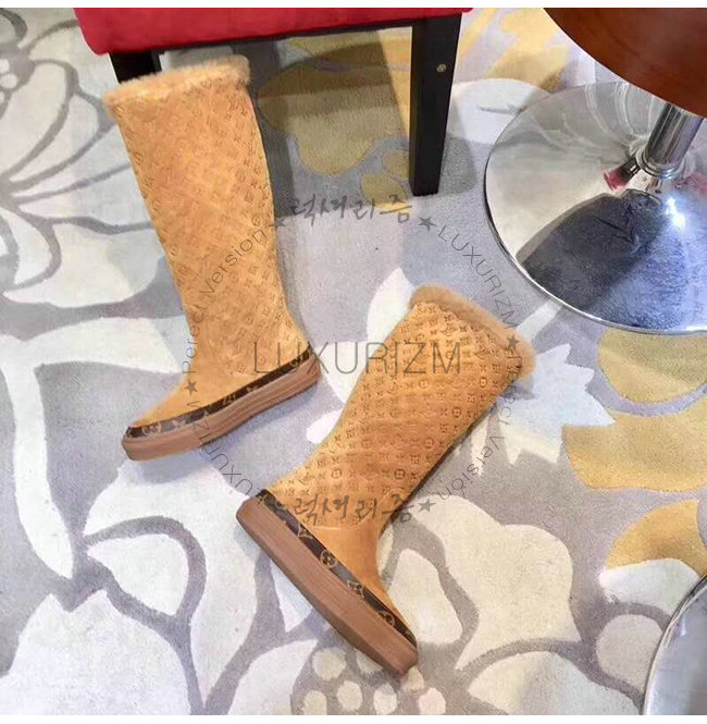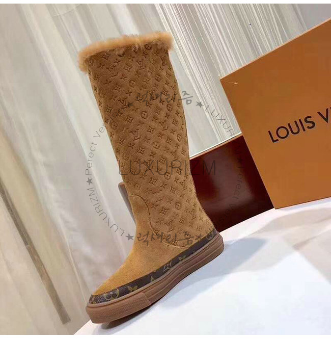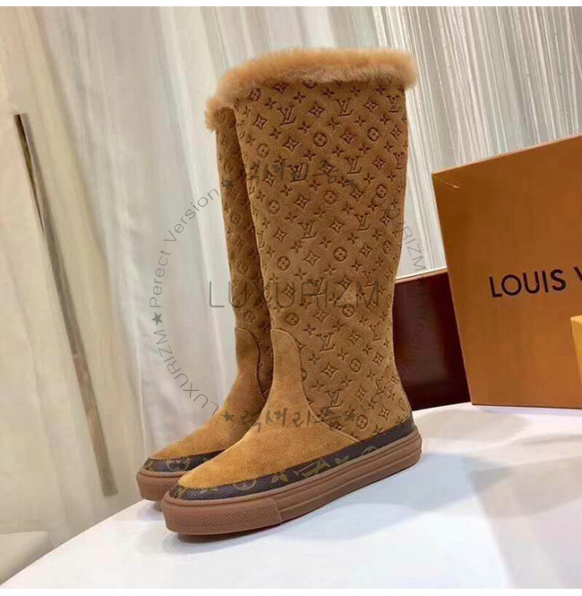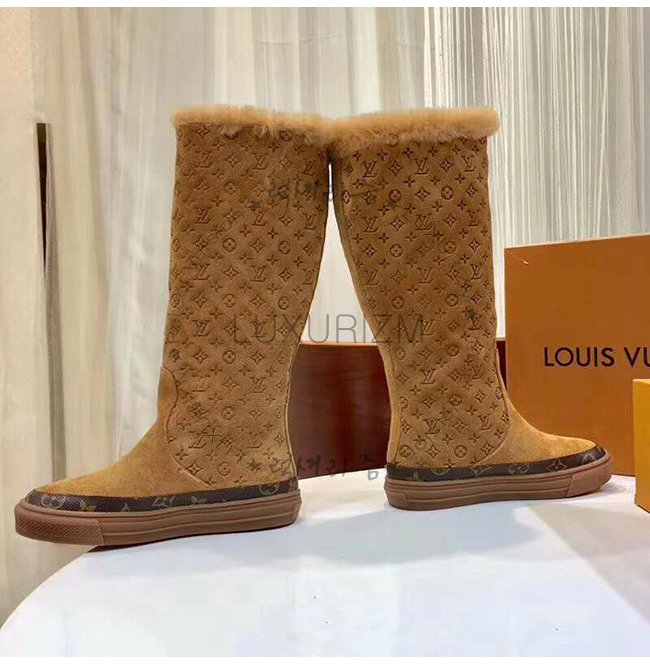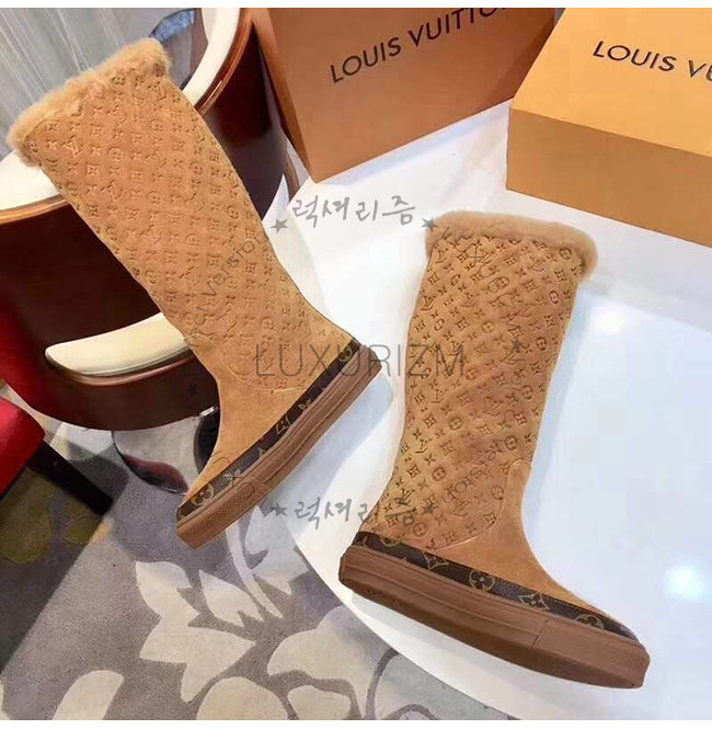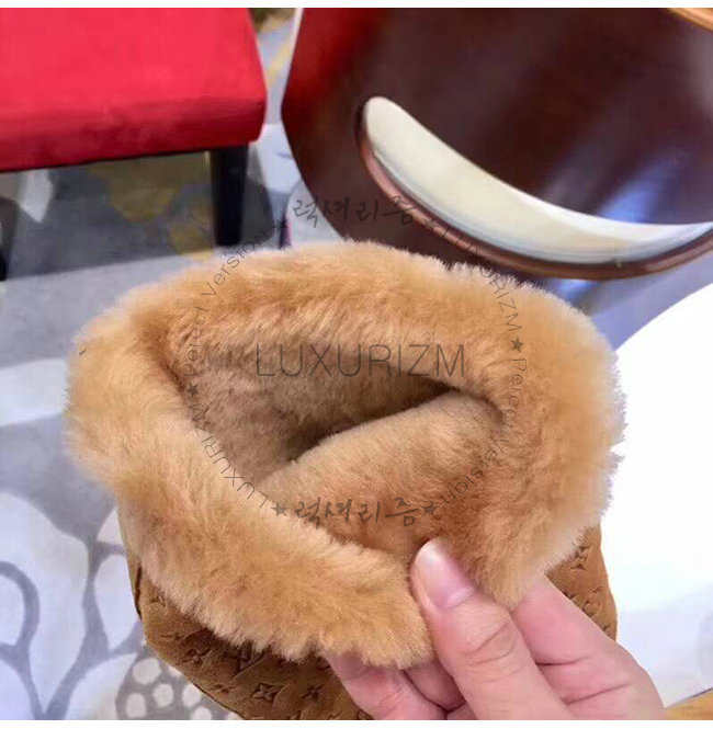 LOUIS VUITTON-1A4FFK 루이비통 카멜 스웨이드 송아지 가죽 스노볼 플랫 하프 부츠