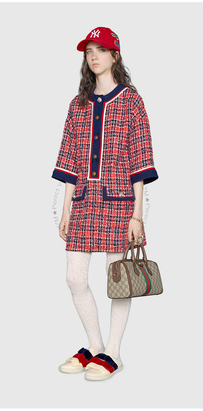 하우스의 로맨틱한 감성에서 영감을 받은 섬세한 장식.블루와 화이트 및 레드의 조합으로 선보이는