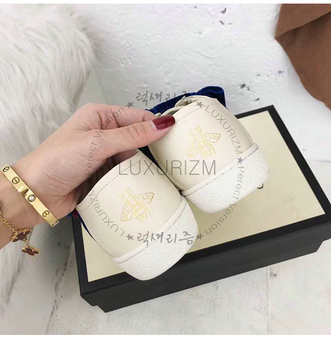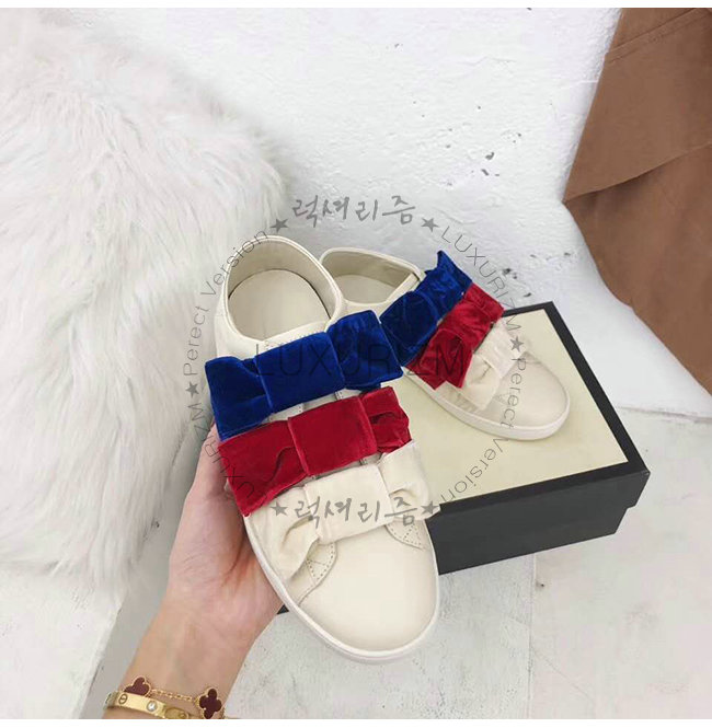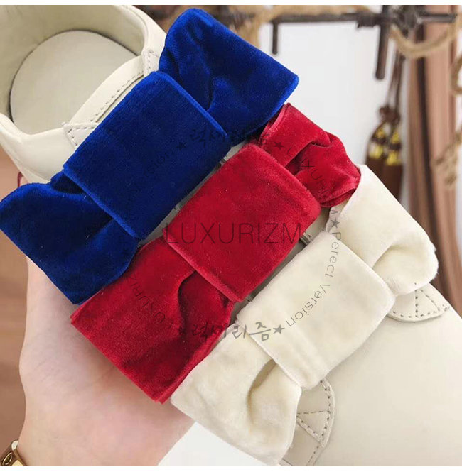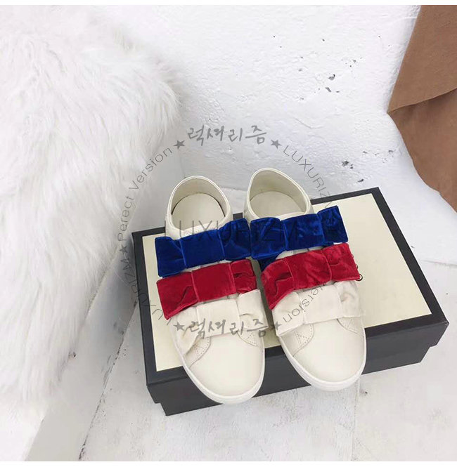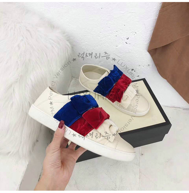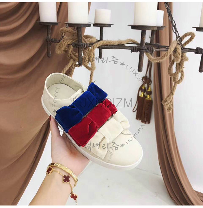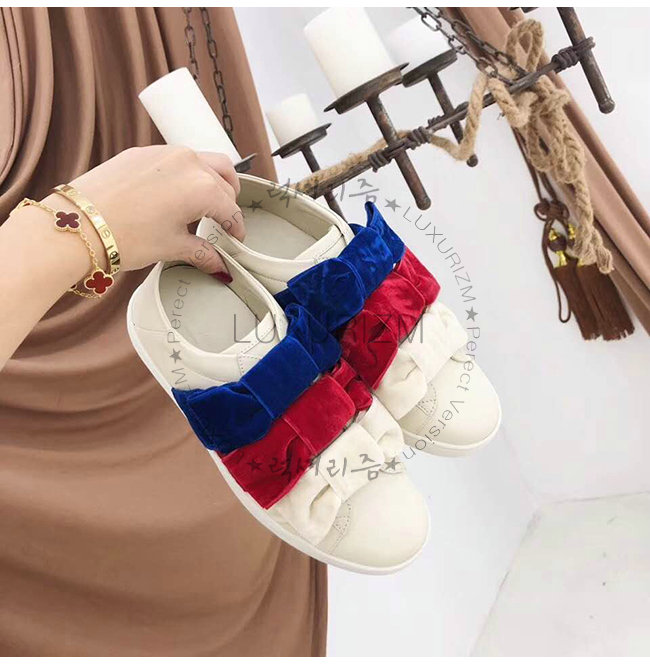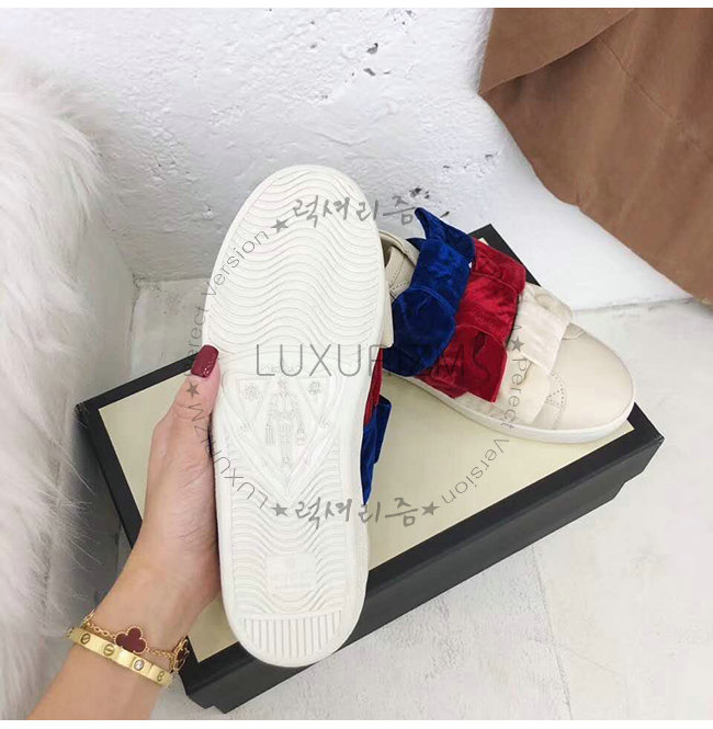 GUCCI-524989 9093 구찌 에이스 화이트 가죽 벨벳 보우 스니커즈